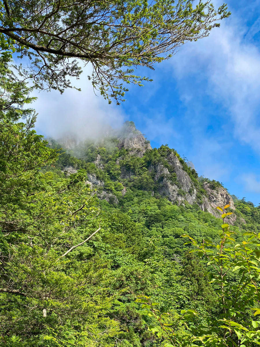 記録(春夏秋の山登り) 20240520 雪彦山ハイキング Author ymc Date 2024年7月1日 日時:2024年5月20日(月) 7:50〜14:20 天候:曇のち晴れ 参加者:M戸(報告者),会員外1名 場所:雪彦山(兵庫県) <行動記録> 雪彦山登山者駐車場 7:50発 →出雲岩 9:02着(小休止) → 大天