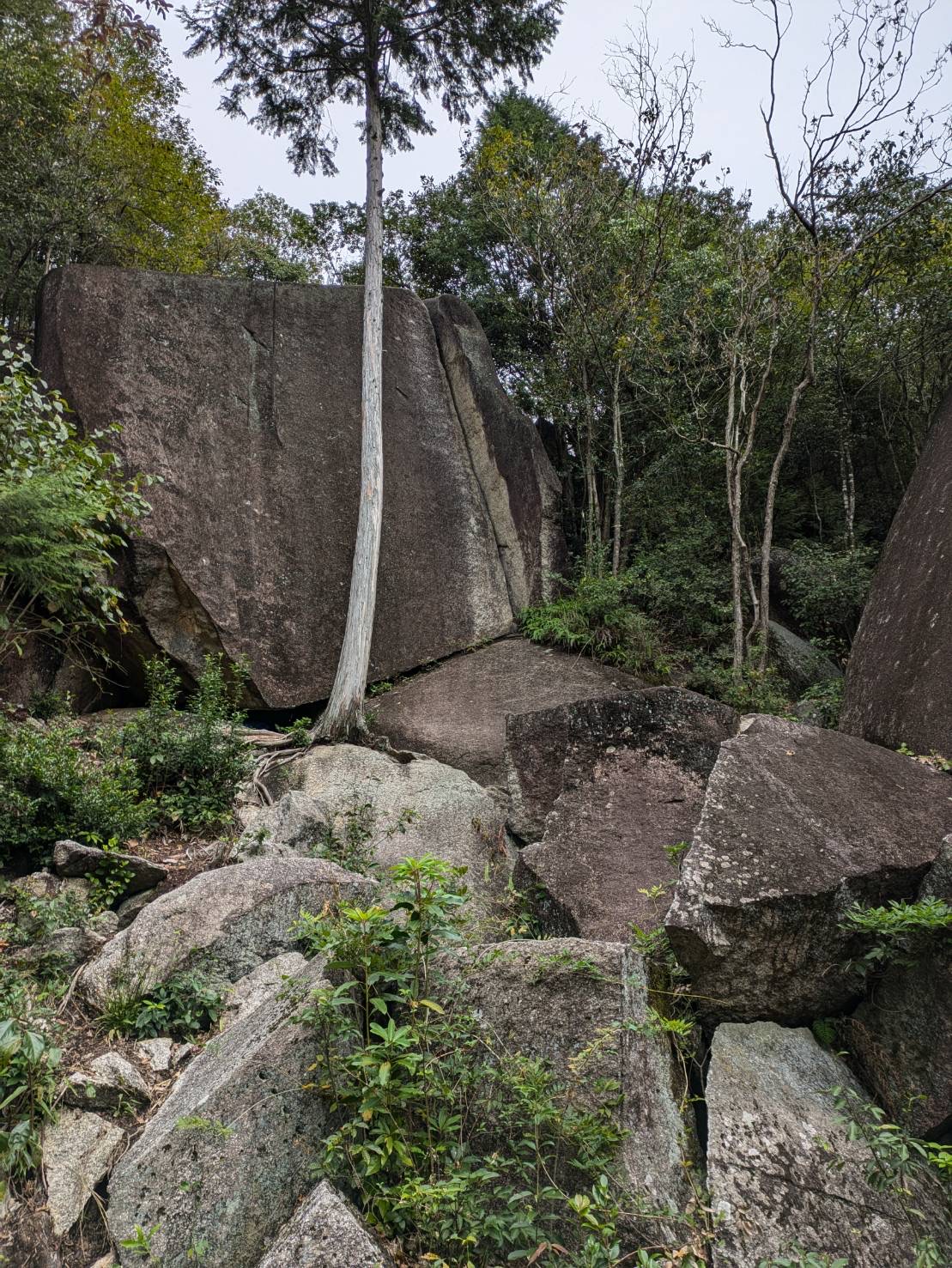 記録(岩登り) 20241005千石岩 Author ymc Date 2024年10月13日 20241005千石岩 M戸さんに初めての外岩へI関が連れて行ってもらいました。前日の雨のせいか人は少なくほぼ貸し切り状態でした。岩は湿っていたり濡れていたり…天気は良くなってきたので乾くのを期待して登ることに。怖いと思