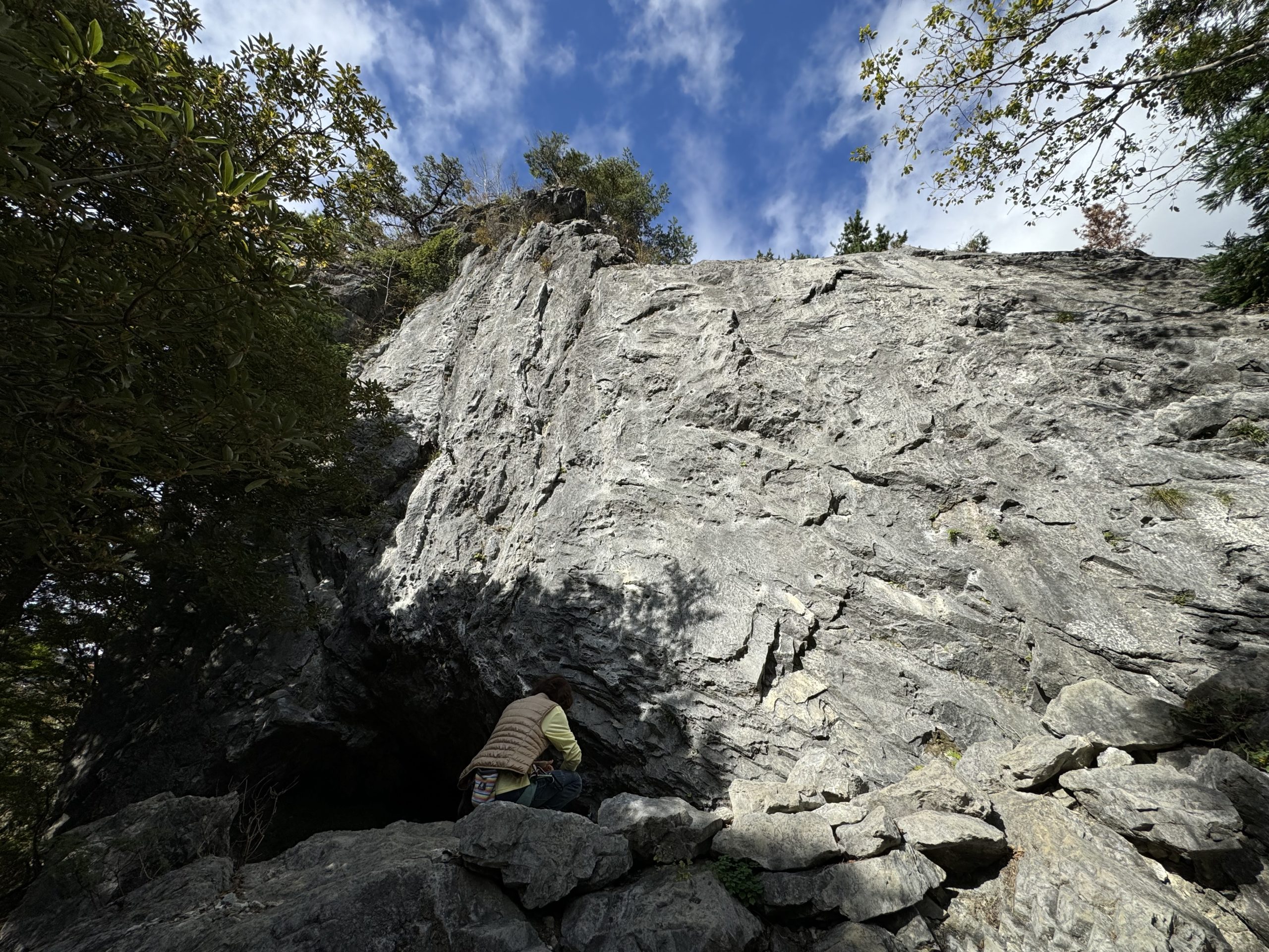 記録(岩登り) 20241116金毘羅山スポートクライミング Author ymc Date 2024年11月16日 参加者 M戸、K林先生、N澤、I口、N村、(報告者)I関 場所 金毘羅山ホワイトチムニー 前日の雨でガスガスの曇り空の中、ゲレンデ状態を確認しに現場へ…思っていたよりコンディション良く登り始める先輩達 その間にN村さんと
