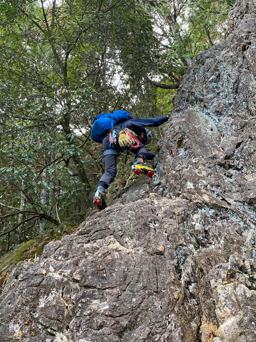 記録(岩登り) 20241228 アイゼントレ 金毘羅山 Author ymc Date 2025年1月15日 日時:2024年12月28日(土) 9:00〜15:00場所:金毘羅山天候:晴れ参加者:I上、M戸(記) I上さんが、年始に計画した南八ヶ岳のアイスクライミングに参加希望してくれたものの、アイゼントレーニングは経験無いと