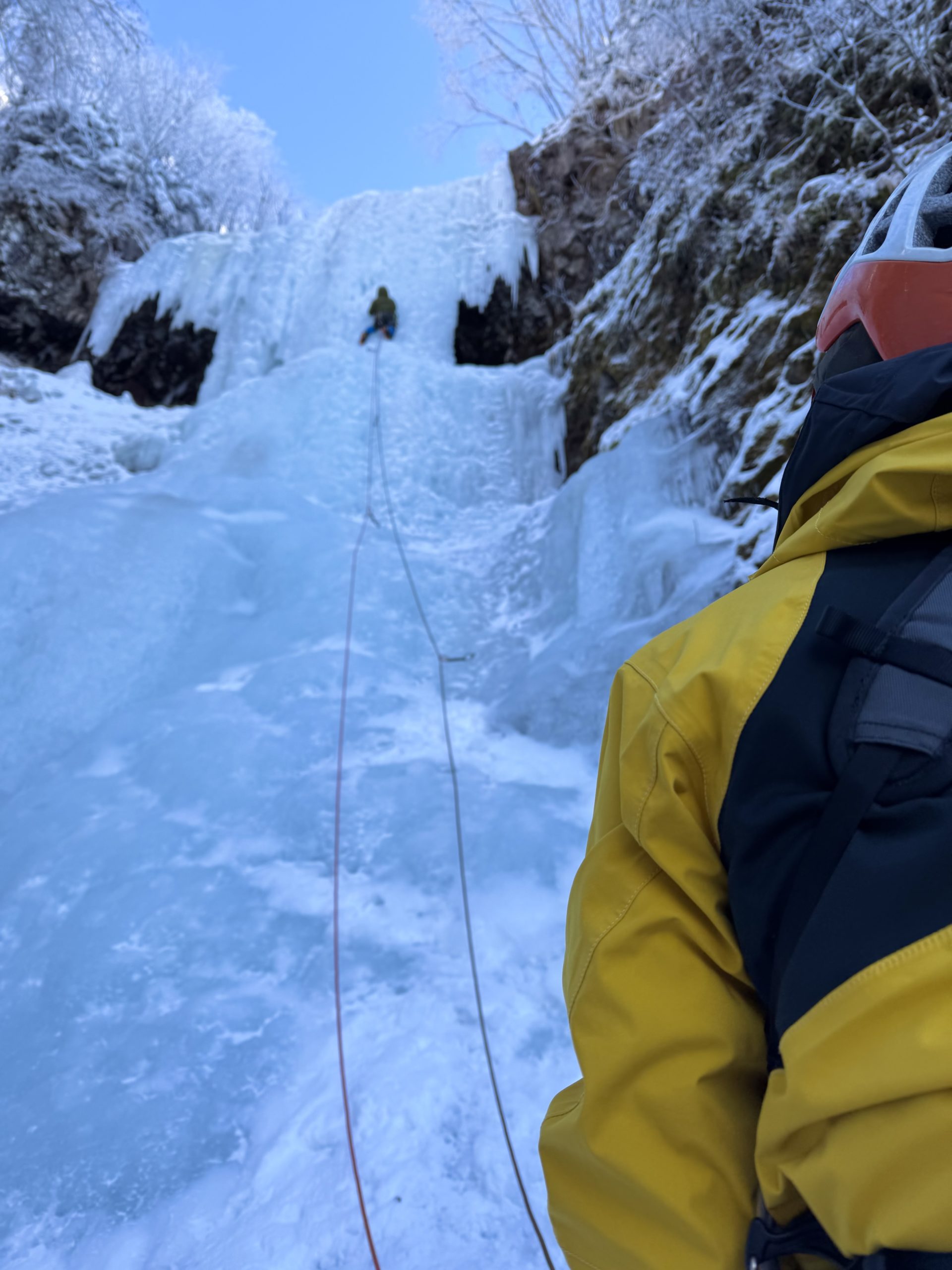 記録(冬の山登り) 20251227-28 アイスクライミング講習、南沢大滝登攀 Author ymc Date 2026年1月4日 2025年12月27日(土)-28日(日) 天候:両日晴れ 参加者:M戸さん、K林先生、S藤(報告者) 場所:南沢大滝(南八ヶ岳) 年末の休みを利用して南八ヶ岳でアイスクライミングを楽しんできました。 27日(土) 7時