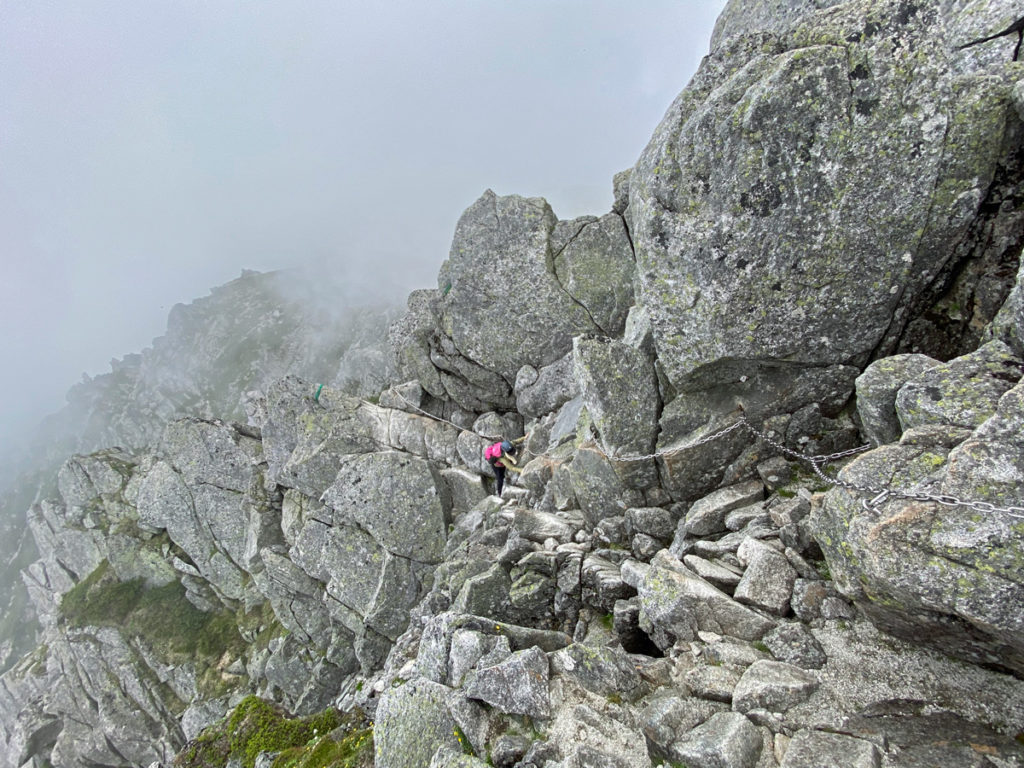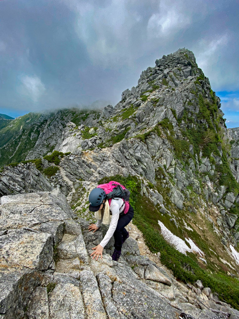 日本アルプス初心者の新人向けに、ロープウェイでお気軽に登れる3,000m級の高山、木曽駒ヶ岳と宝剣岳をハイキングしてきました。今回はゆっくり目のペースで歩きましたが、高山を登るのが初めてのO田さんは、少し高山病気味。体調をみながら場合によっては途中下山も考えていましたが、木曽駒ヶ岳からの帰りの宝剣山荘での昼休憩で元気を取り戻して、岩登りが入ってくるとテンションが上がったようで、宝剣岳-極楽平への縦走ルートを登りきることができてよかったです。アルパインクライミングへ一歩近づいたかな?