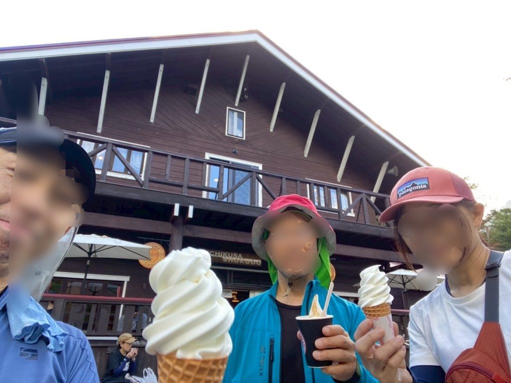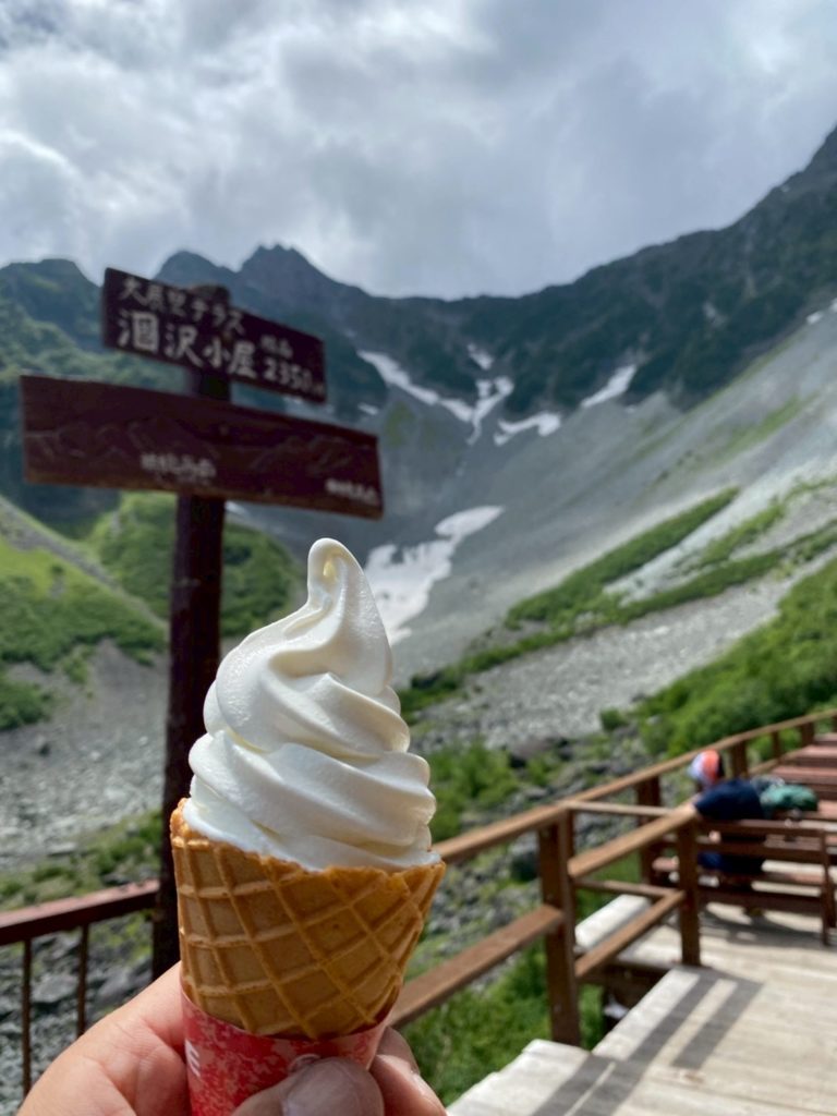 今回のメインイベントを終え、涸沢小屋でソフトクリームで乾杯🍦