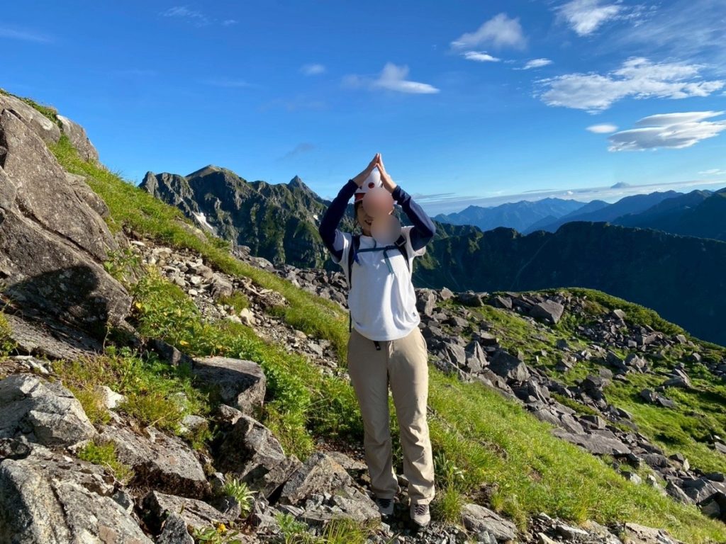 稜線に出ました‼️槍ヶ岳と記念撮影