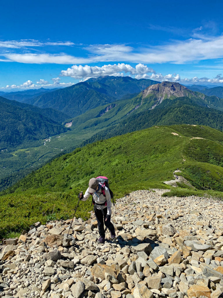 O田さんは、西穂独標以降の岩稜帯を歩くこと自体は楽しかったそうなのですが、終始しんどい感じだったそうで、ピラミッドピークを過ぎたあたりから、呼吸を深くしても更にしんどくなり、脚を前に一歩出すこともつらくなってきたとのことで、高山病の症状さえなければ、もっと楽しかっただろうとのことです。O田さんは、岩稜帯歩きをもっと行きたいとのことなので、今後も標高2,000m以上の山を何度も登って高山慣れですね。