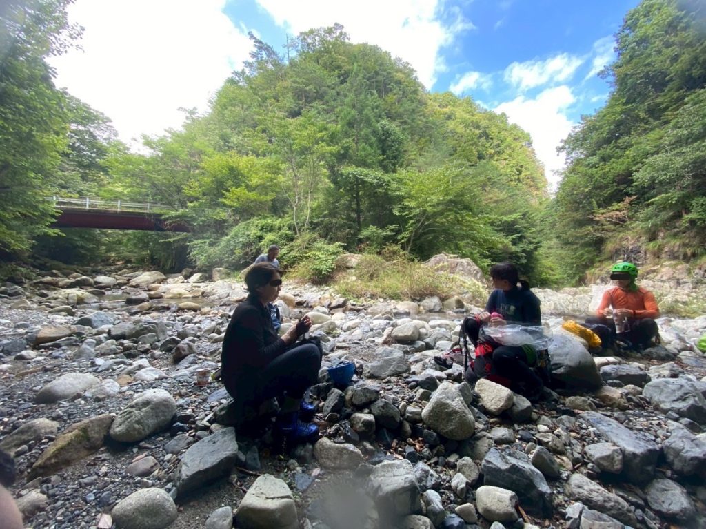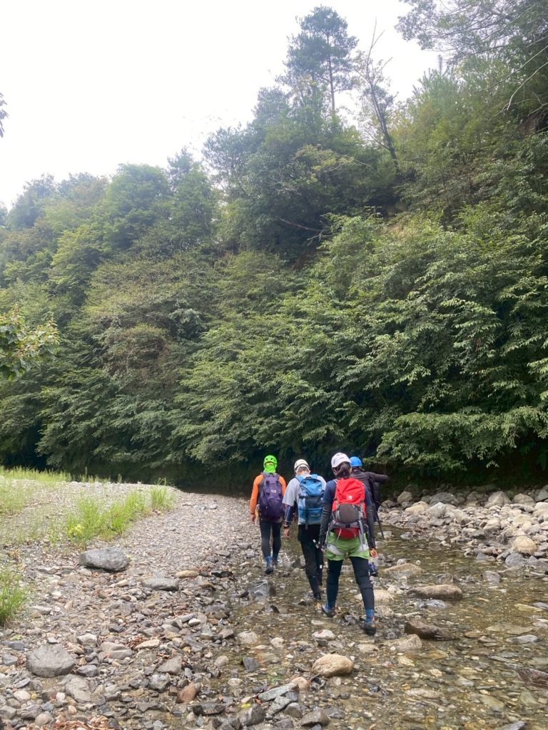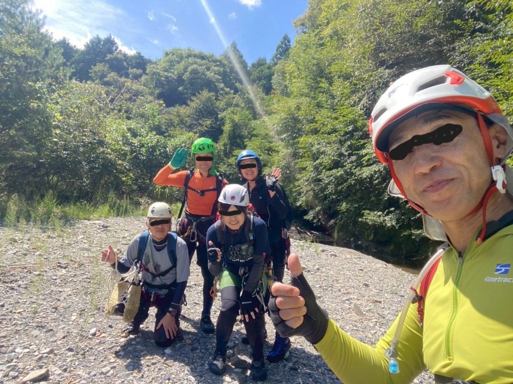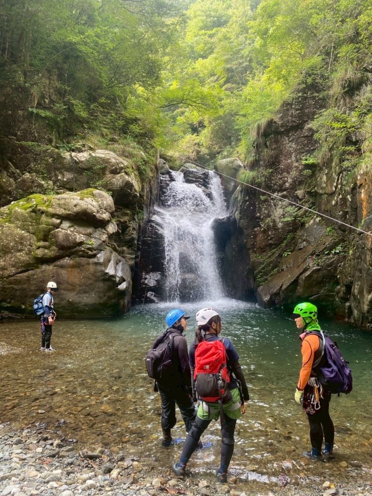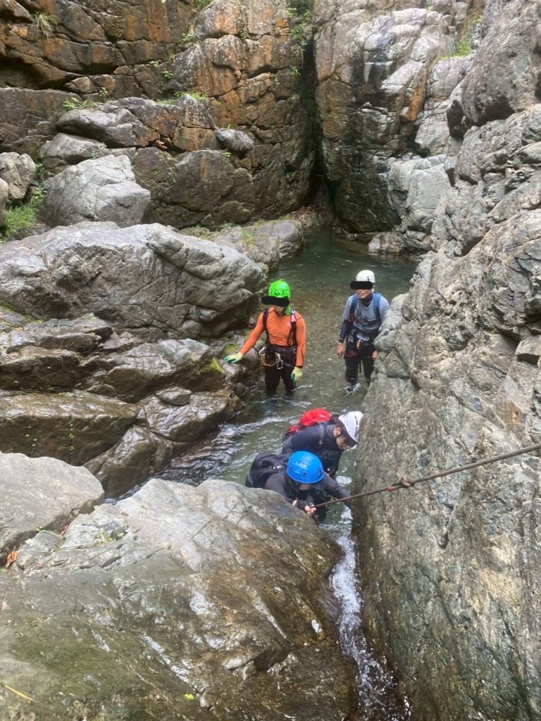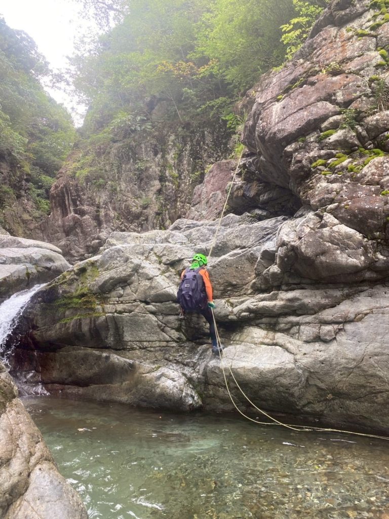 2個目の堰堤を超えた所で懸垂で降下。下部は岩が崩れもろくなっており、自分落とした落石での怪我は避けたいところ。
