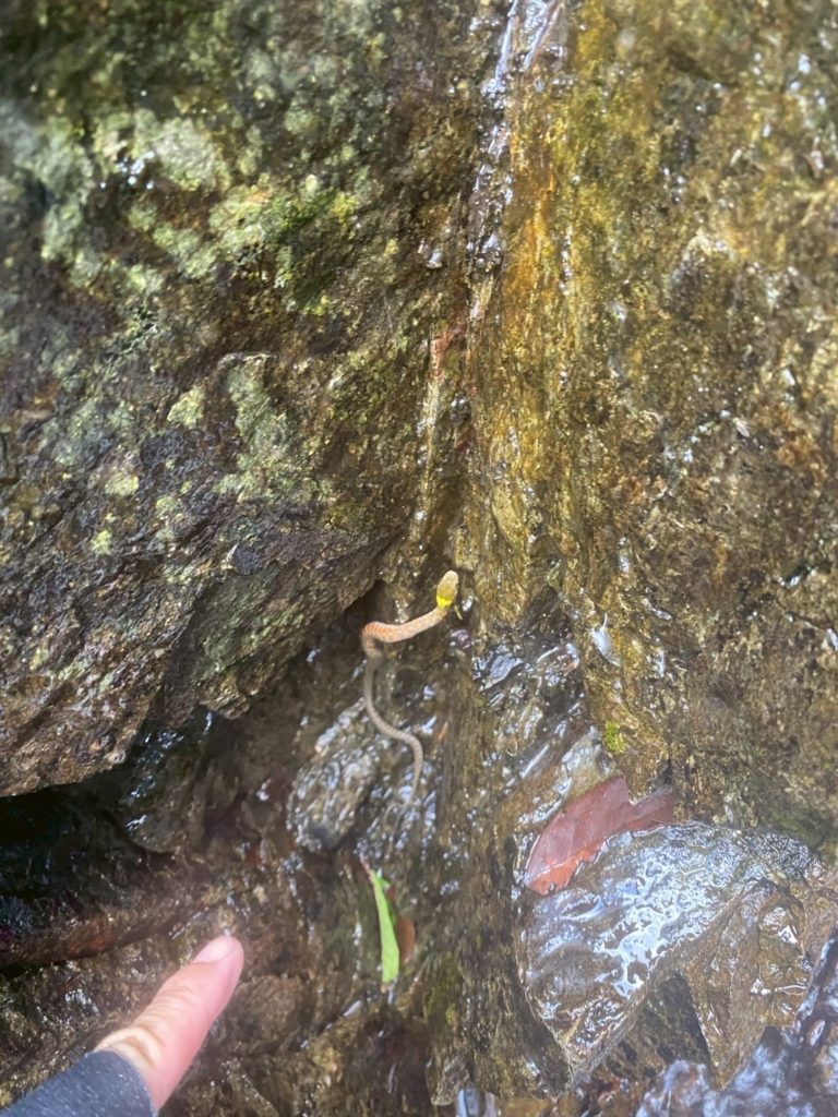 レディーが岩をつかもうとした瞬間、悲鳴が。しらの間につかむと男でもビックリするところ。