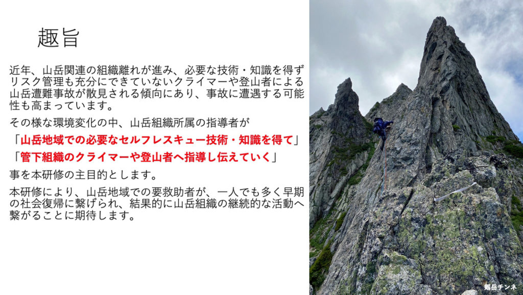 参加対象:各山岳団体の登攀指導・遭難対策に関わる委員