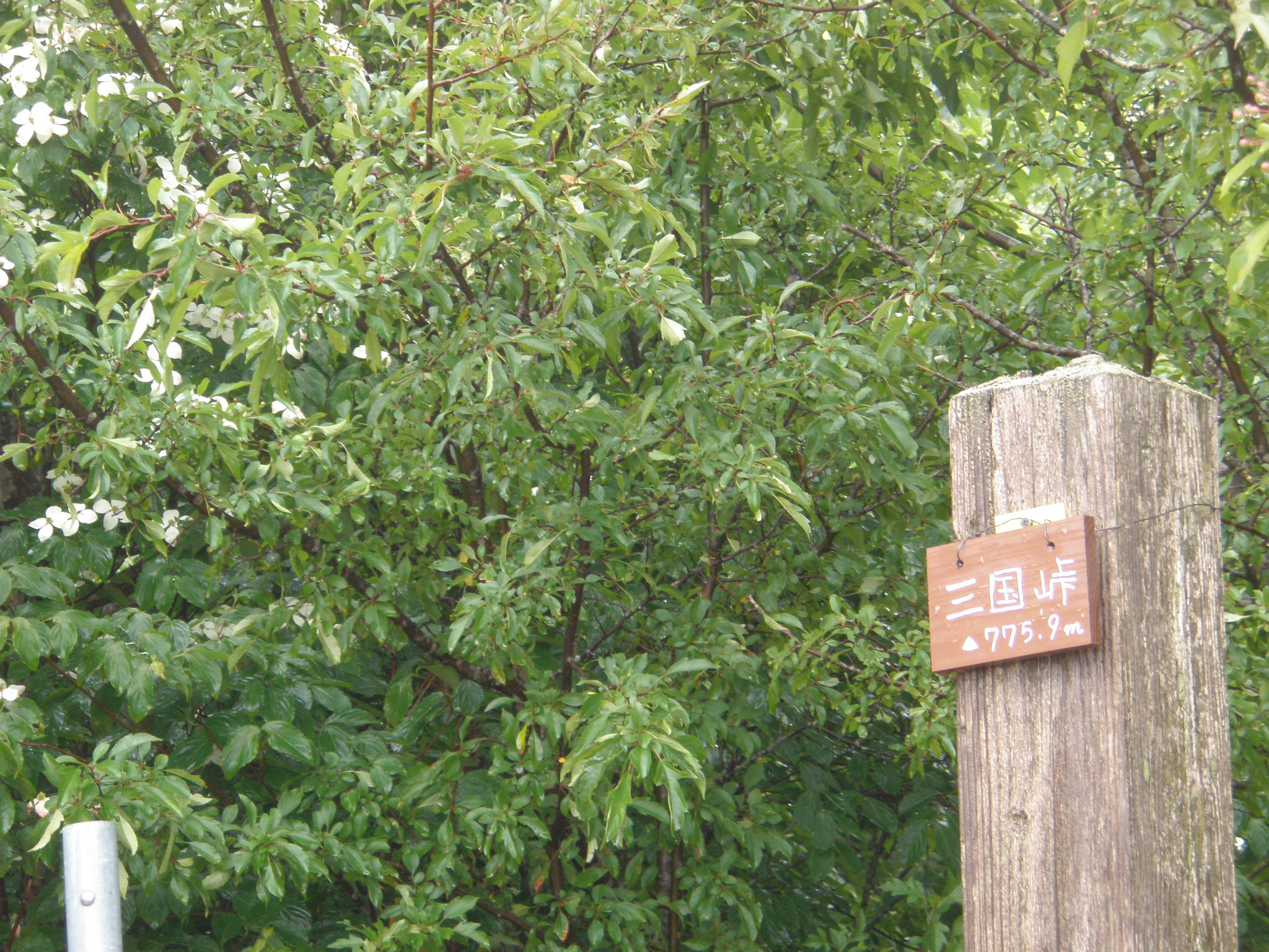 10名の参加予定でしたが、天候が悪く半減しました。参加者が山帰来に集合した時には、あれ程雨と雷でしたが、降っていませんでした。生杉休憩所で準備を始めたら降り始め、打ち合わせが終わり、車のドアを閉め、歩き出そうとしたら大雨です。小降りになるまで待機しました。登山道は滑りやすく早々にルート変更を参加者に伝えます。三国峠への所用時間は粗予定通りです。