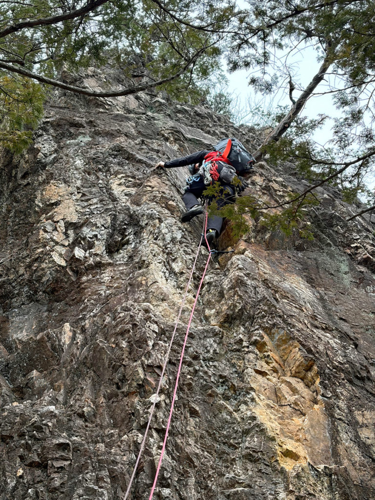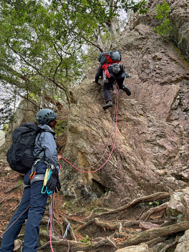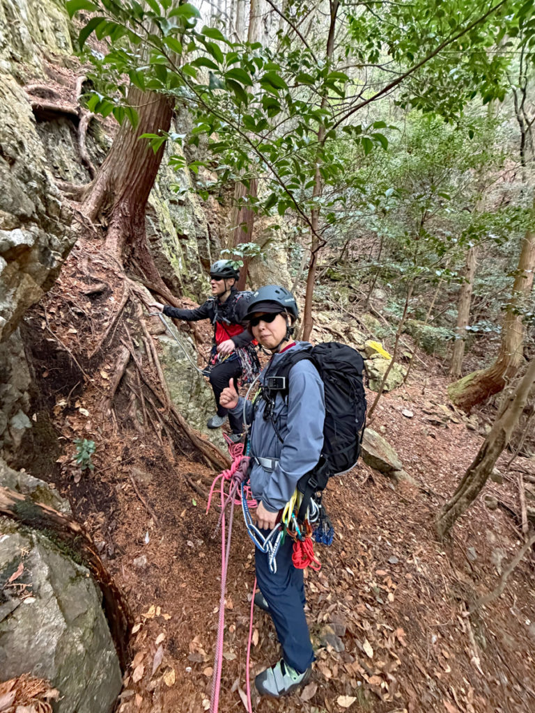 S藤さんは、ちょっと課題はありながらも手本となる登りができていたと思います。O田さんは、初めてのマルチと思えない程、上手くリード登りやフォロービレイができていたと思います。課題はありましたが、今後の繰り返し練習で良くなってくると思います。今回は充実した練習になったと思います。今後が楽しみです(*^_^*)