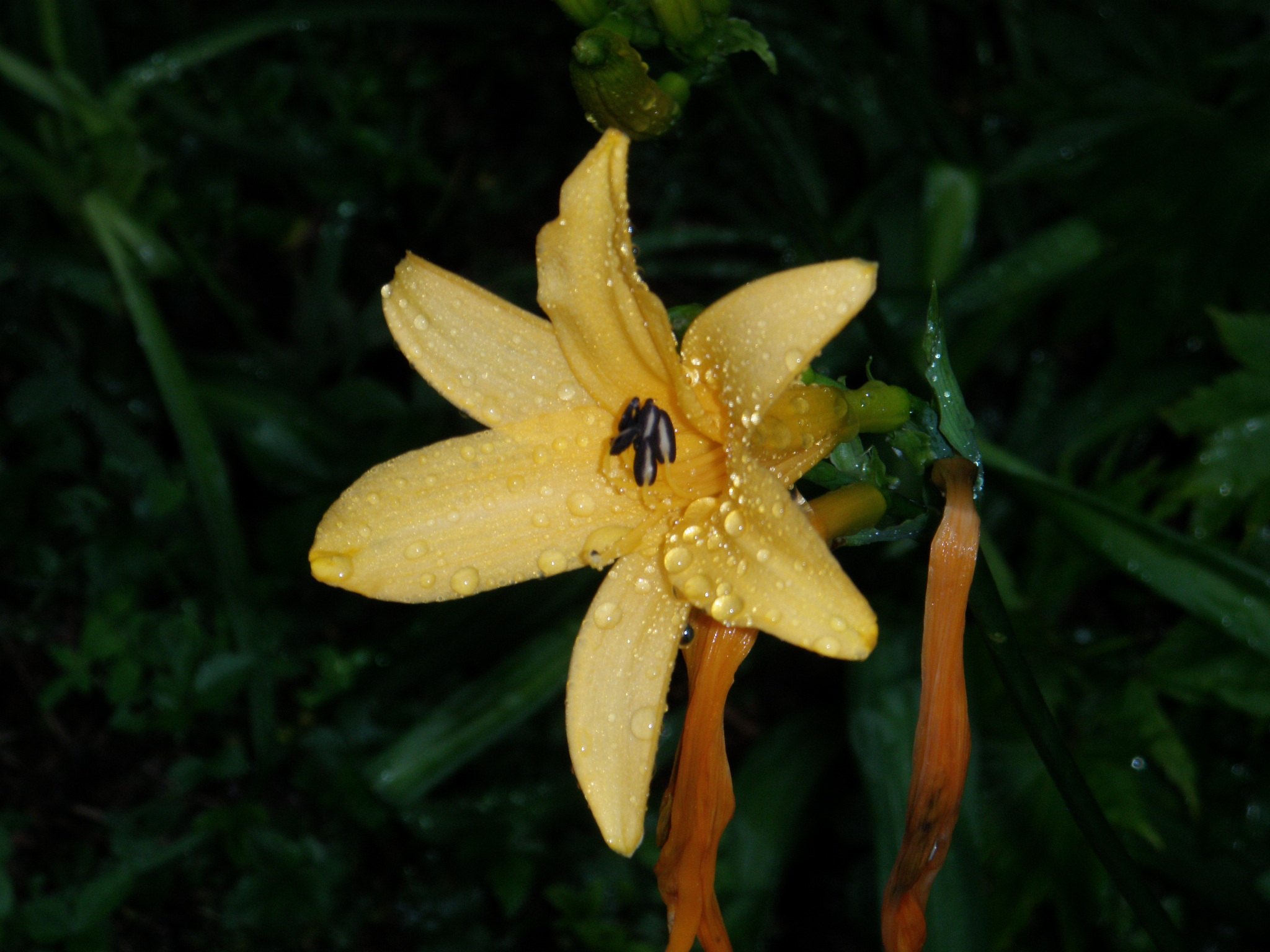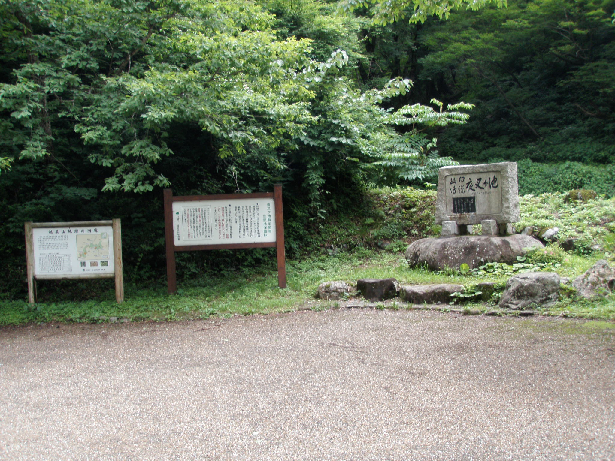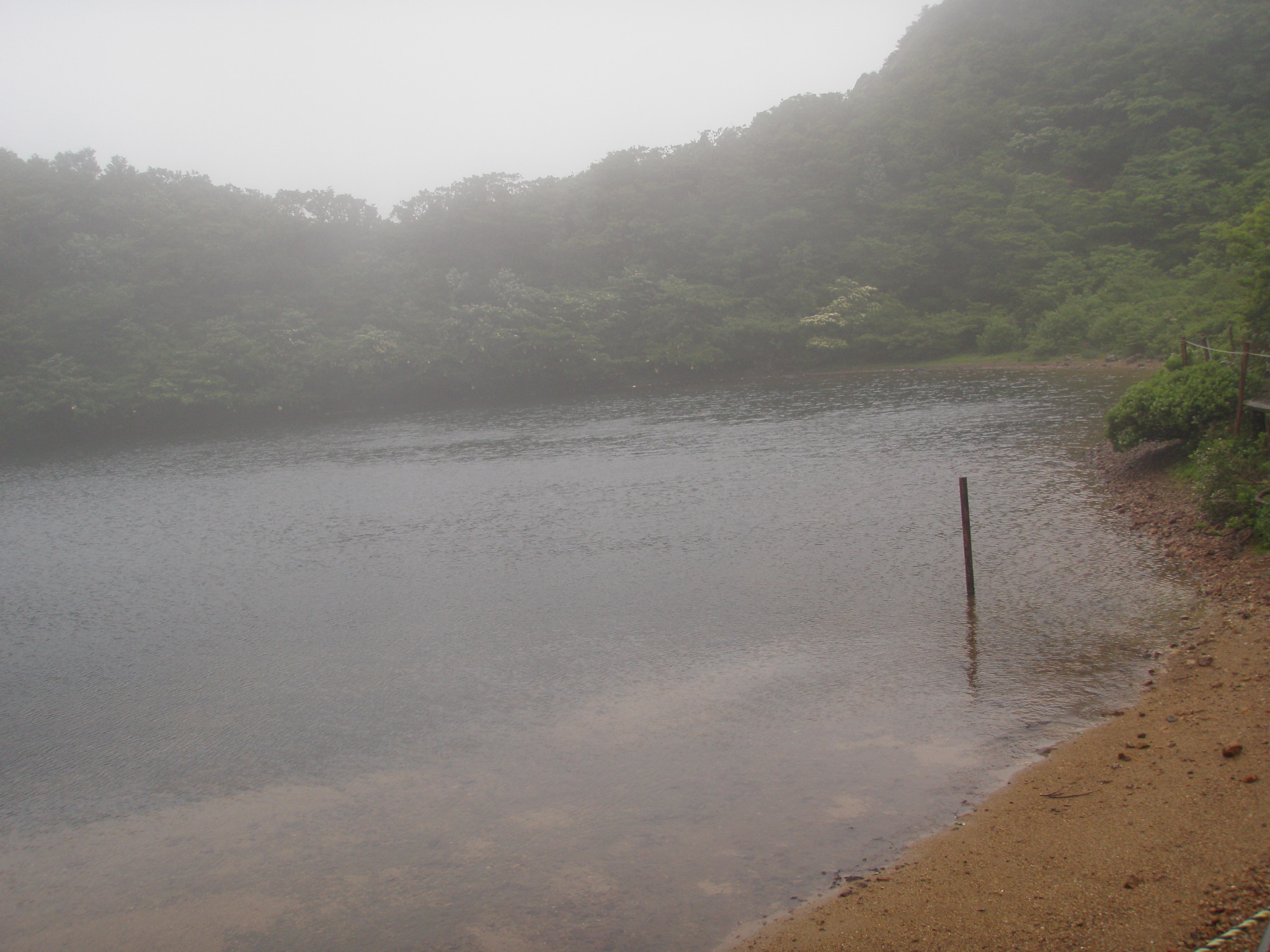 夜叉ケ池では本日の登山者全員集合です。夜叉ゲンゴロウの保護観察員、バイクの兄ちゃん、福井の若い男女4名これで全てです。三周ヶ岳に向かうと言うと観察員は登山道は有りませんと言われます。若い男女も少し進んで戻ってきたみたいです。お勧めできませんと言われ熊が出ますよと脅されます。それでも我々二人は行きます。若い男女も誘いましたが、断られ軟弱者と言います。いえそうではありません。安全登山の見本です。ニッコウキスゲは僅かに残っていました。