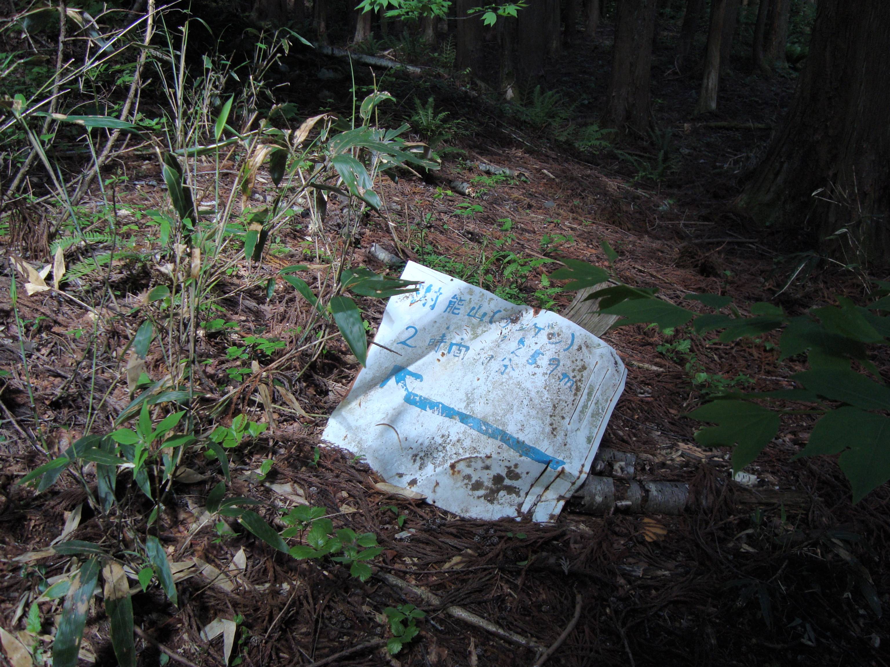 この道は若竹荘のご主人が切り開いたとのことで、最初は若竹荘の導水管に沿って裏の尾根を越え、一旦大長谷まで降りる。ここで導水管と分かれて、対岸の西北尾根を登る。この辺り、古い道標があるが、踏み跡が不明瞭である。地図で尾根を確認して取り付くと直ぐに明瞭な道に出た。