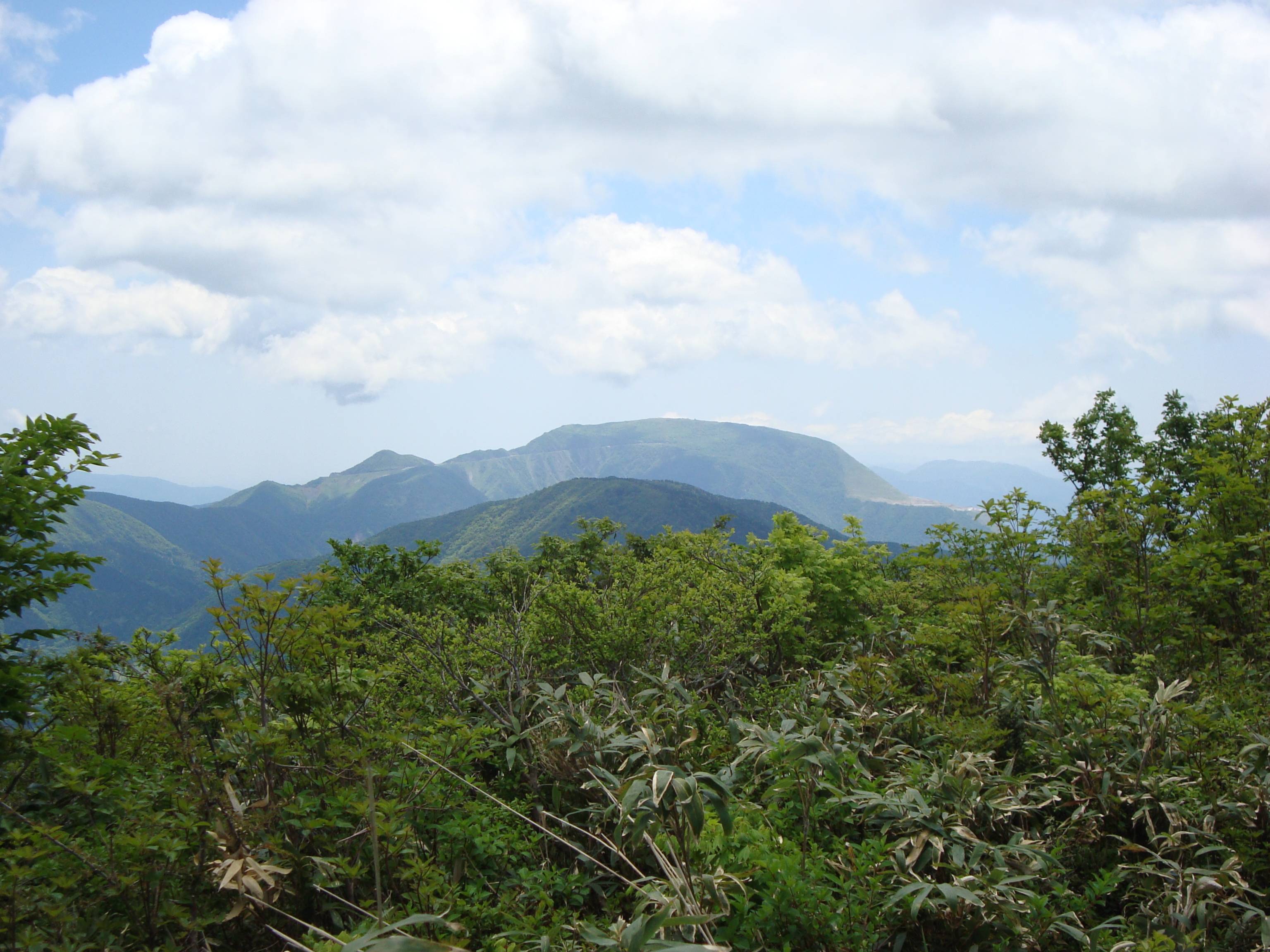 後は、尾根道を辿り頂上直下で背丈程の笹薮を潜り抜け、難なく頂上に出た。 頂上からは、伊吹山・貝月山・能郷白山等奥美濃の山々の素晴らしい展望がえられた。平日なので、誰も来ないだろうと思っていたら、同じルートで長浜の女性一人と品又峠から岐阜の高年男性一人が登って来られた。