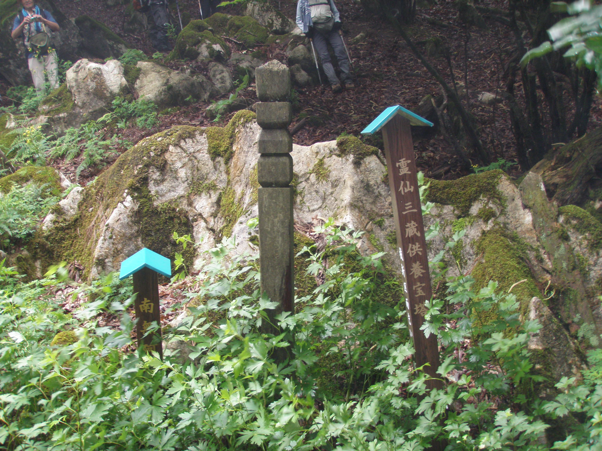 一昨年の10月27日以来の阿弥陀ヶ峰から霊仙山の縦走です。このコースでこの時期は蛭の宝庫です。蛭は杉の植林帯、石灰岩、湿気と三拍子揃っている所が多いのです。そこで塩水スプレーを服に施します。登山靴は皮ですので、塩に弱いので、靴とスパッツにはサロンパスのスプレーを施します。最後は虫除けスプレーを全身に浴びせます。今回も前回と同じ浄水場の所から登ります。途中には昔有った霊仙寺の阿弥陀堂跡があります。