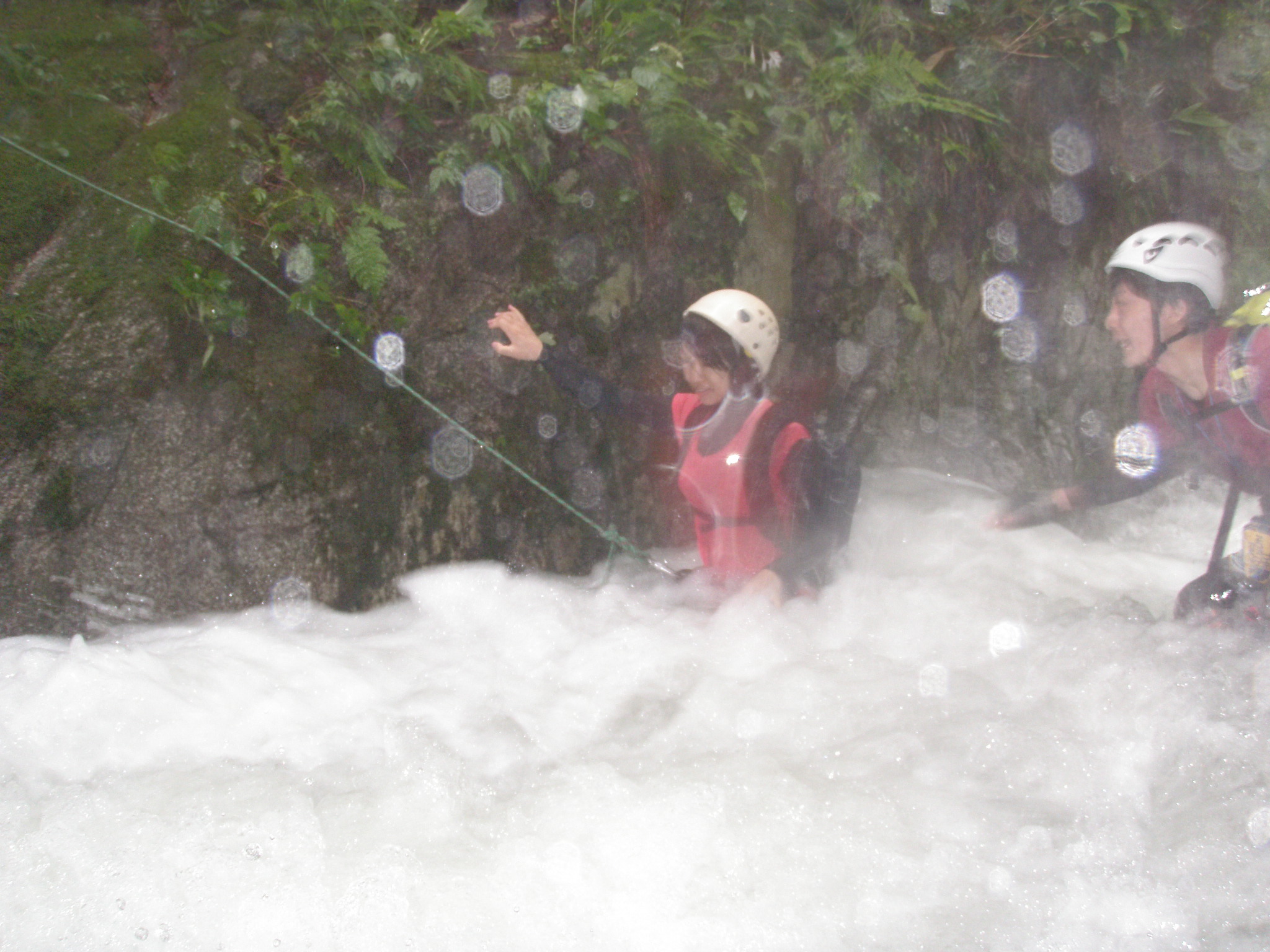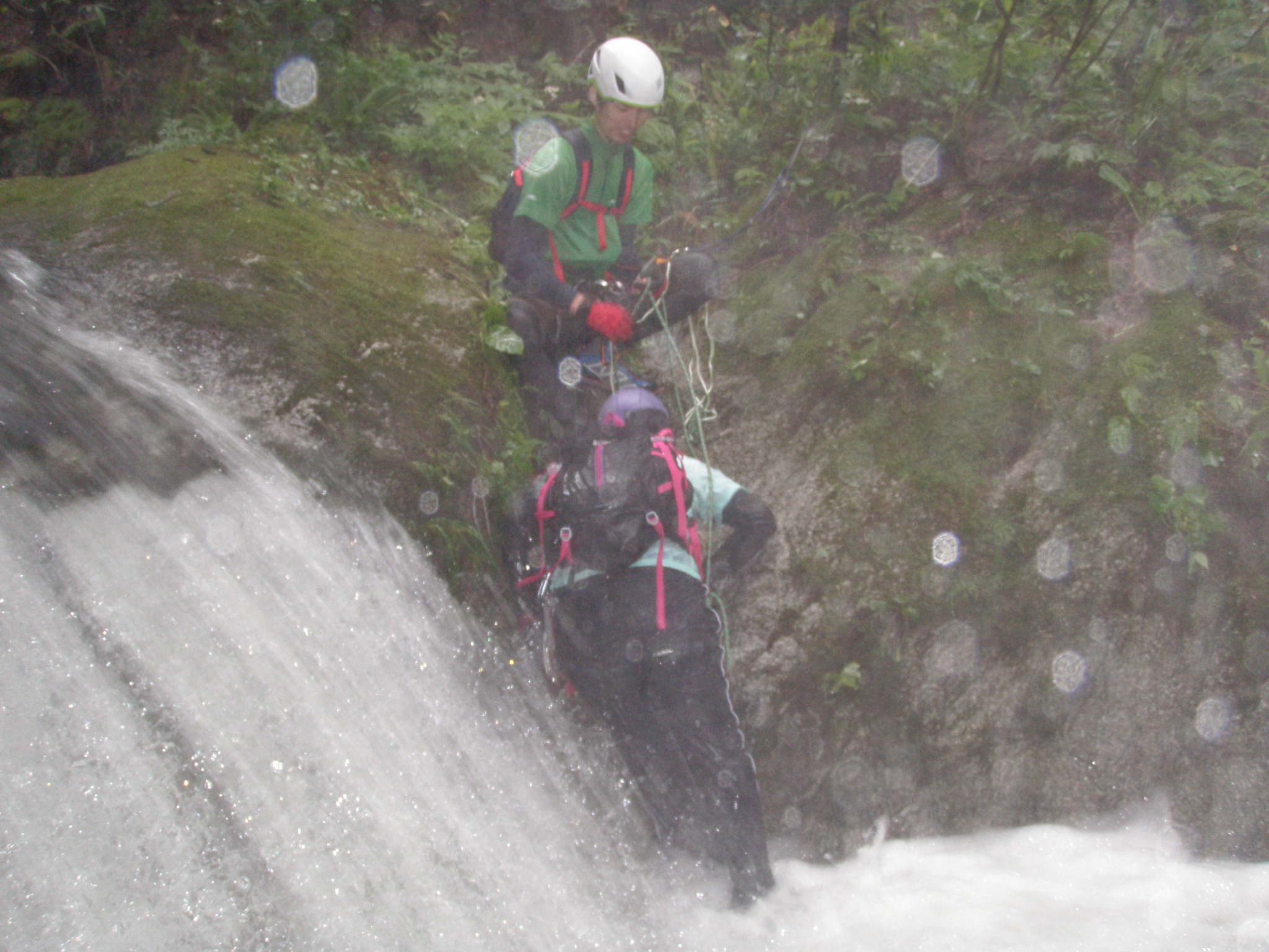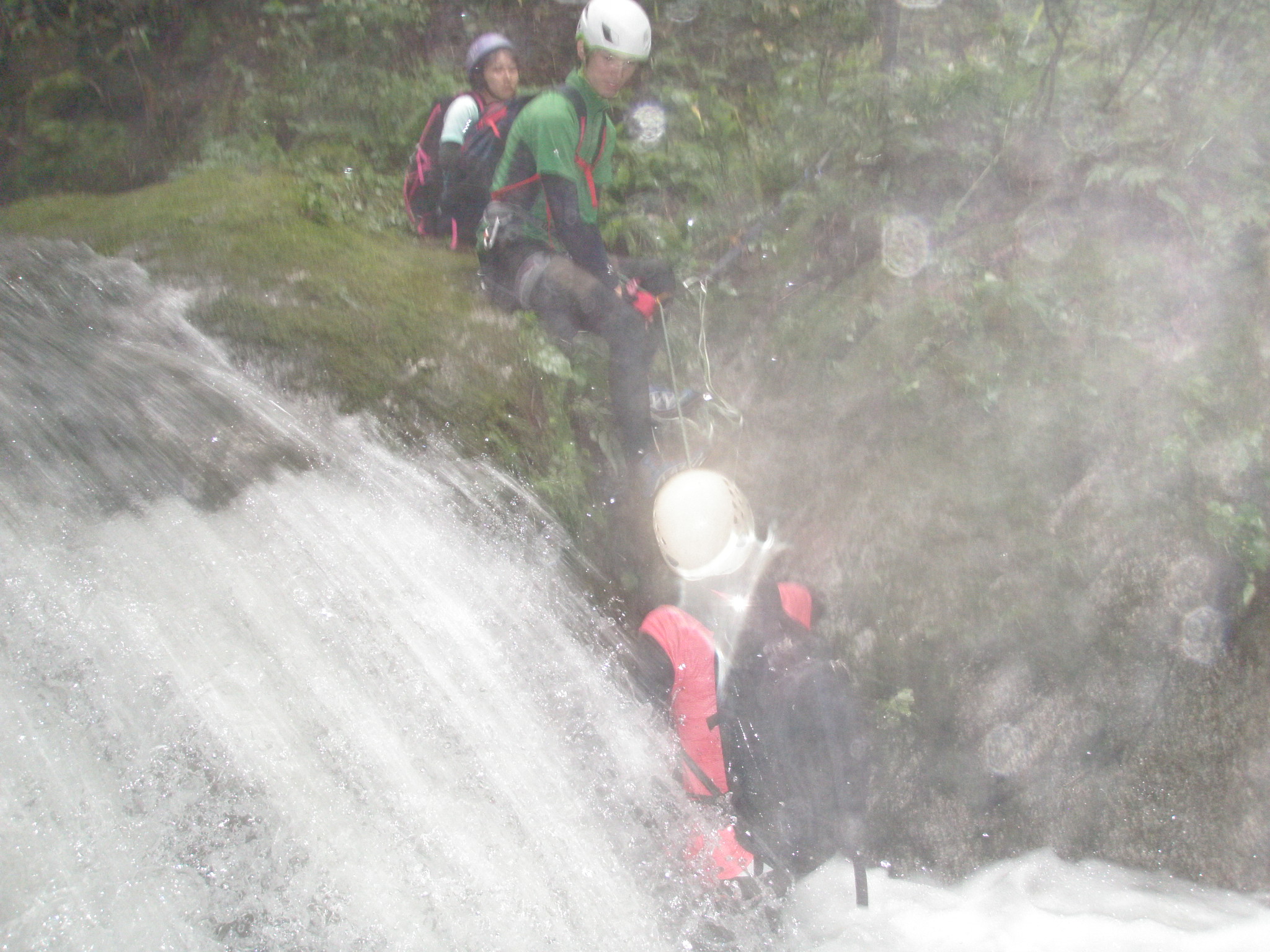 全員が懸垂下降したら昼食にして、最後はザイルを残置していましたので、トップロープにして、全員が滝の途中まで登りました。後は遊歩道でデポ地点まで僅かの歩きで終了でした。