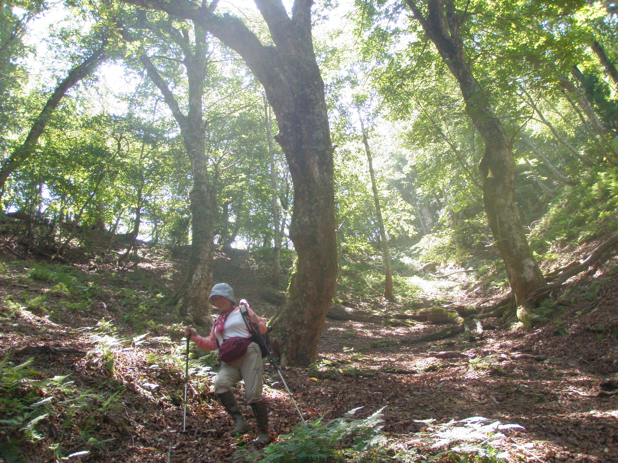 登りは暑かったですが、稜線に出たら心地よい風が有り、暑い夏まっさかりですが、問題なく歩けます。此処は大きな木が有りますので、稜線歩きでも、ほとんど日陰ですので、毎年この時期に歩いて居ます。又この時期しか出会えない海老根が有ります。
