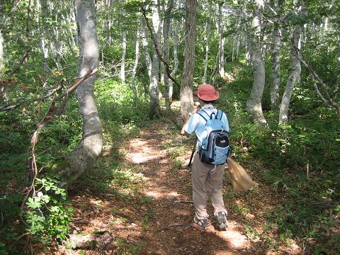 地図には東尾根コースは「急坂」と書いてあるけれど、それほど感じず、思っていたよりも大きなブナの原生林の散策を楽しみました。東峰では和歌山県から来られたご夫婦に出会い、お互い「平日なのに、人に会うなんて・・・」とびっくり。東峰から30分程進んだところが、横山岳の頂上です。頂上は残念ながら展望が良くなく、私たちは持ってきたカップラーメンと新米おにぎりをむしゃむしゃ・・・。
