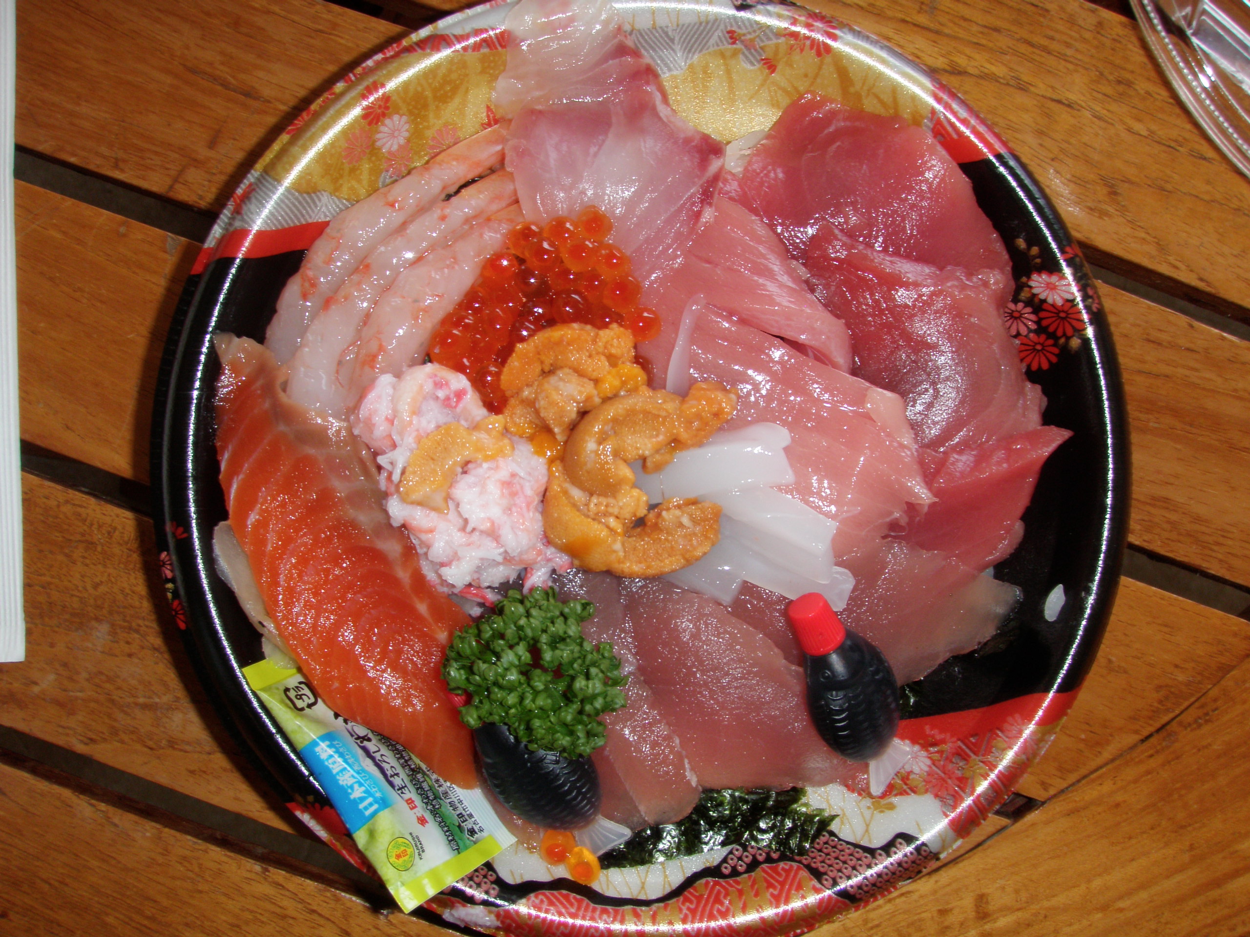 朝日荘の夕食と朝食です。また徳光ではおなじみの海鮮丼ですが900円でした。確か以前はもっと高かったと思いますが、その代りシャリが見えない位乗っていたと思います。これは以前の海鮮丼です。皆さん如何ですか?