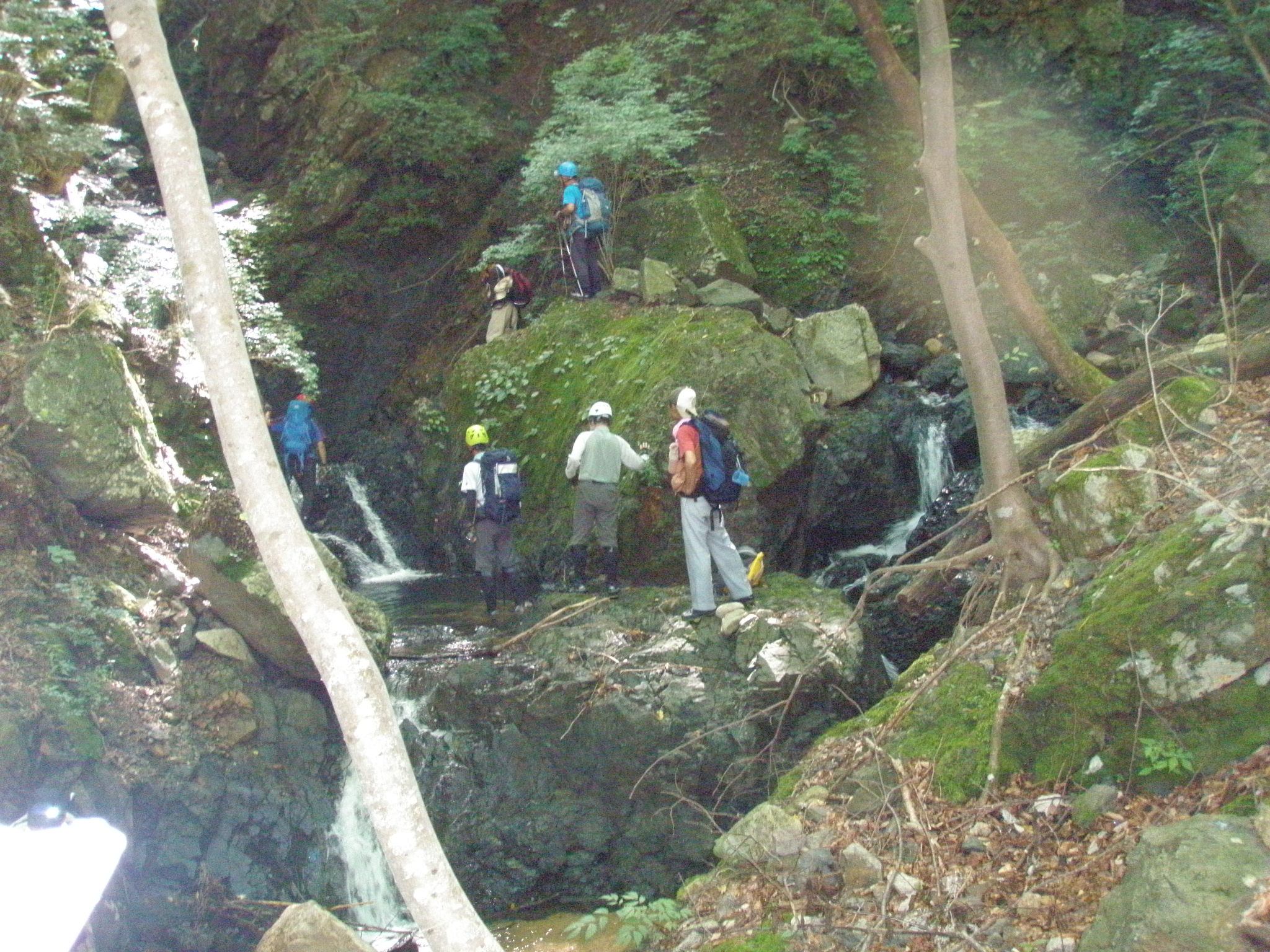 昨日に引き続き、今日も沢登りです。今日は参加者は多く、沢と登山道組に分かれて登り、仙ヶ岳山頂で合流する予定です。