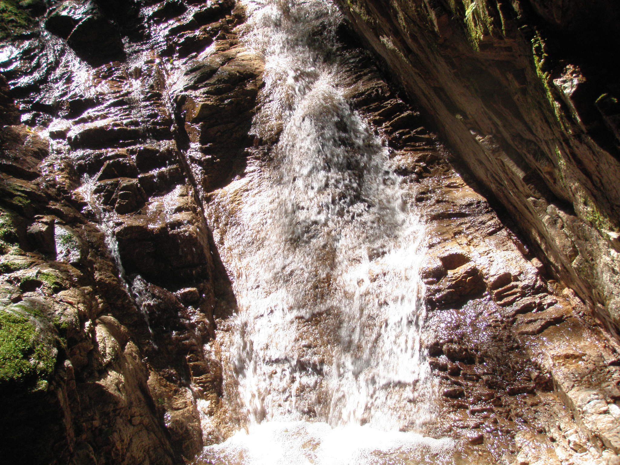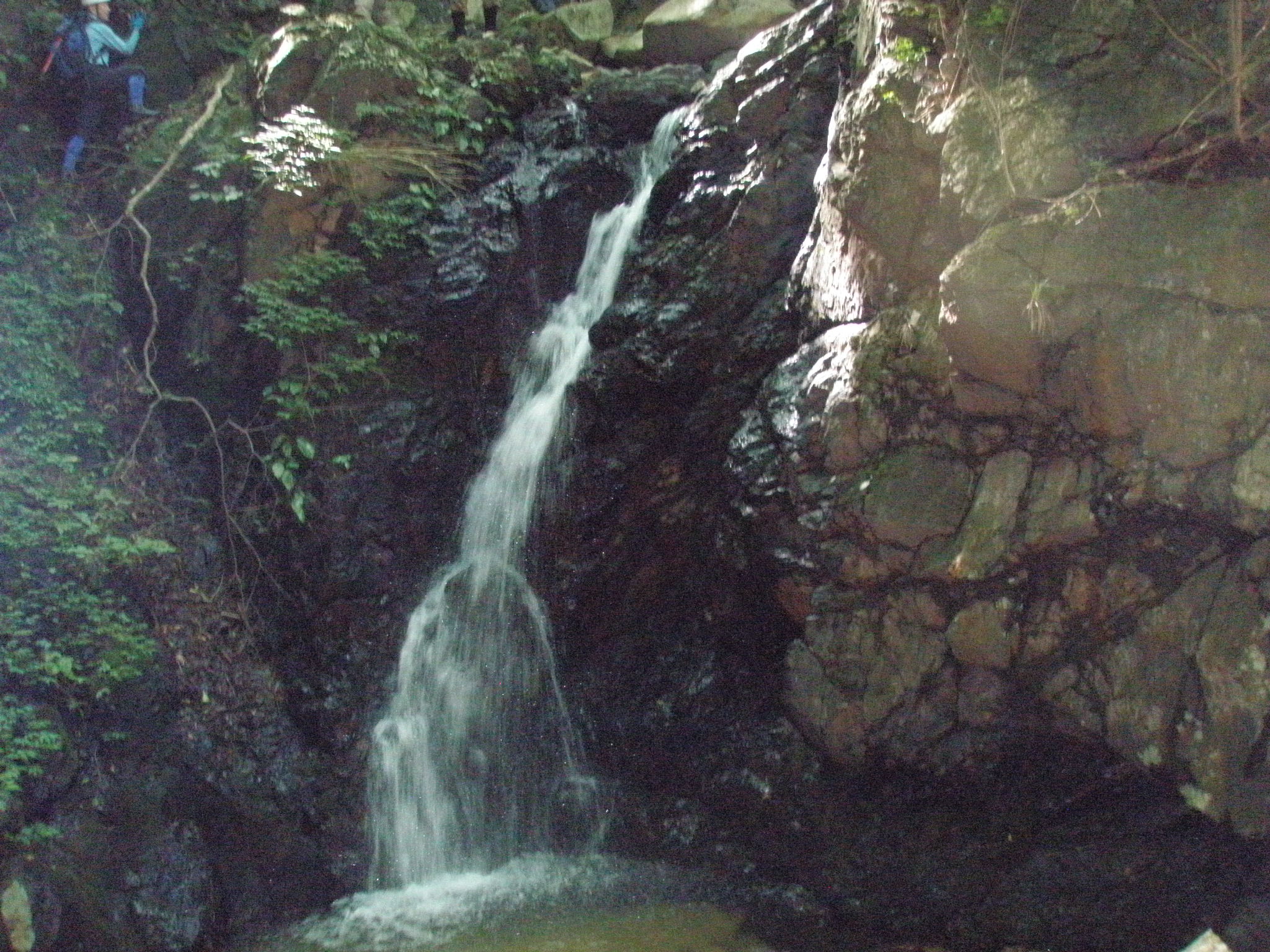 左股分岐で、沢登り組と登山道組に分かれます。此処には滝が有りますが、モンドのザイルは右股の登山道組に張りました。