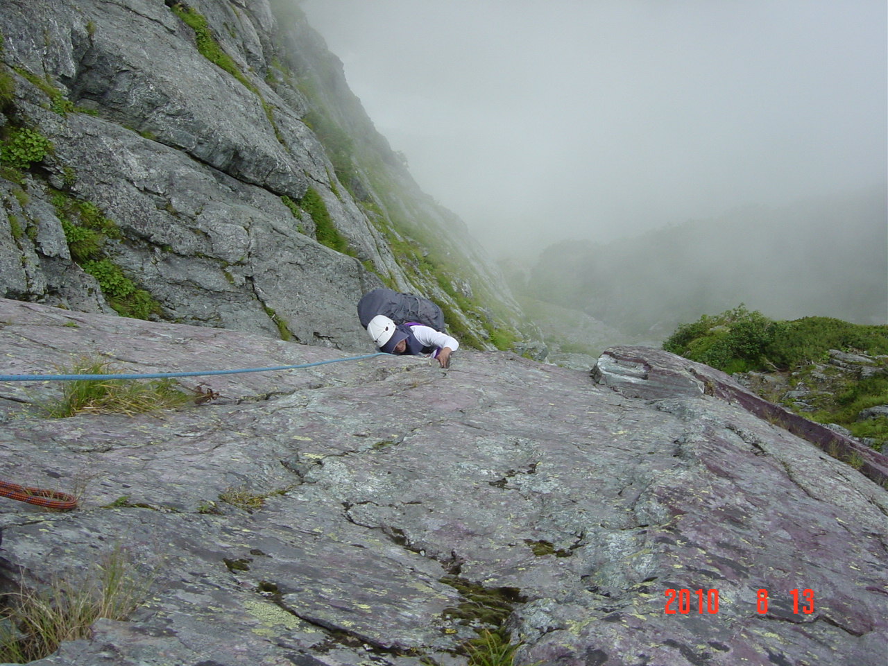 写真はバットレスDガリー奥壁(おくかべ?)1ピッチ目をサードで登るOY田、セレクション最終ピッチを登ってきたT中秀。