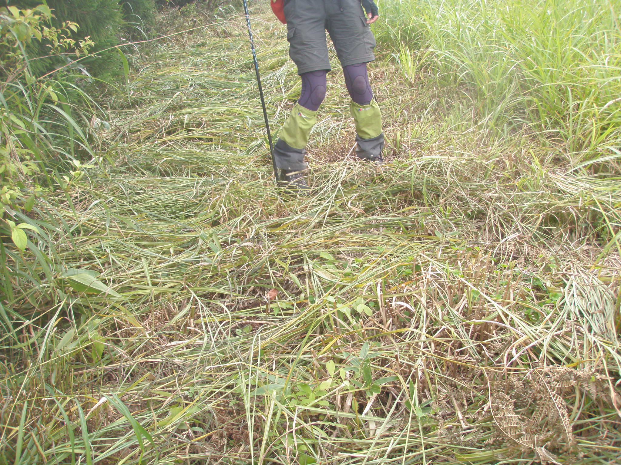 8月は登山道は見えますが、藪は出ていて歩き辛いし、登山道の状態によっては判り辛いです。また木々が繁り展望は利きません。