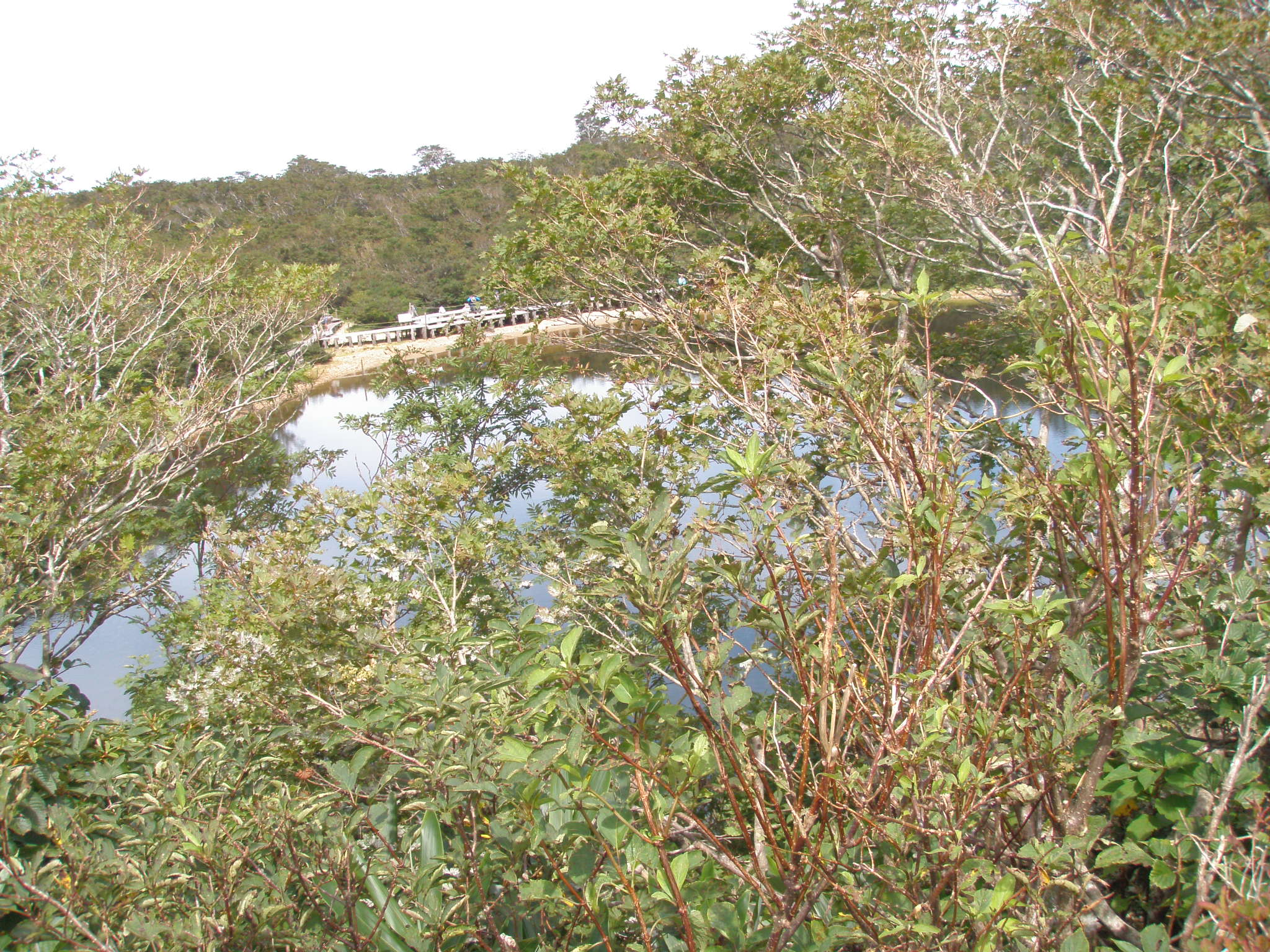 夜叉ケ池が通常の登山客は終点です。我々の直前に出発した親子も我々を直ぐに追い越したカップルも此処まででした。我々は最初から此処から2時間の三周ヶ岳を目指します。此処からは6月に歩いた時よりも、笹が成長して藪分けが厳しくなっていました。前方には10名以上が進んでいますので、蜘蛛の巣と熊の心配はありません。只藪分けの道は両側が崖ですし岩場もありますので、慎重な行動を必要とします。