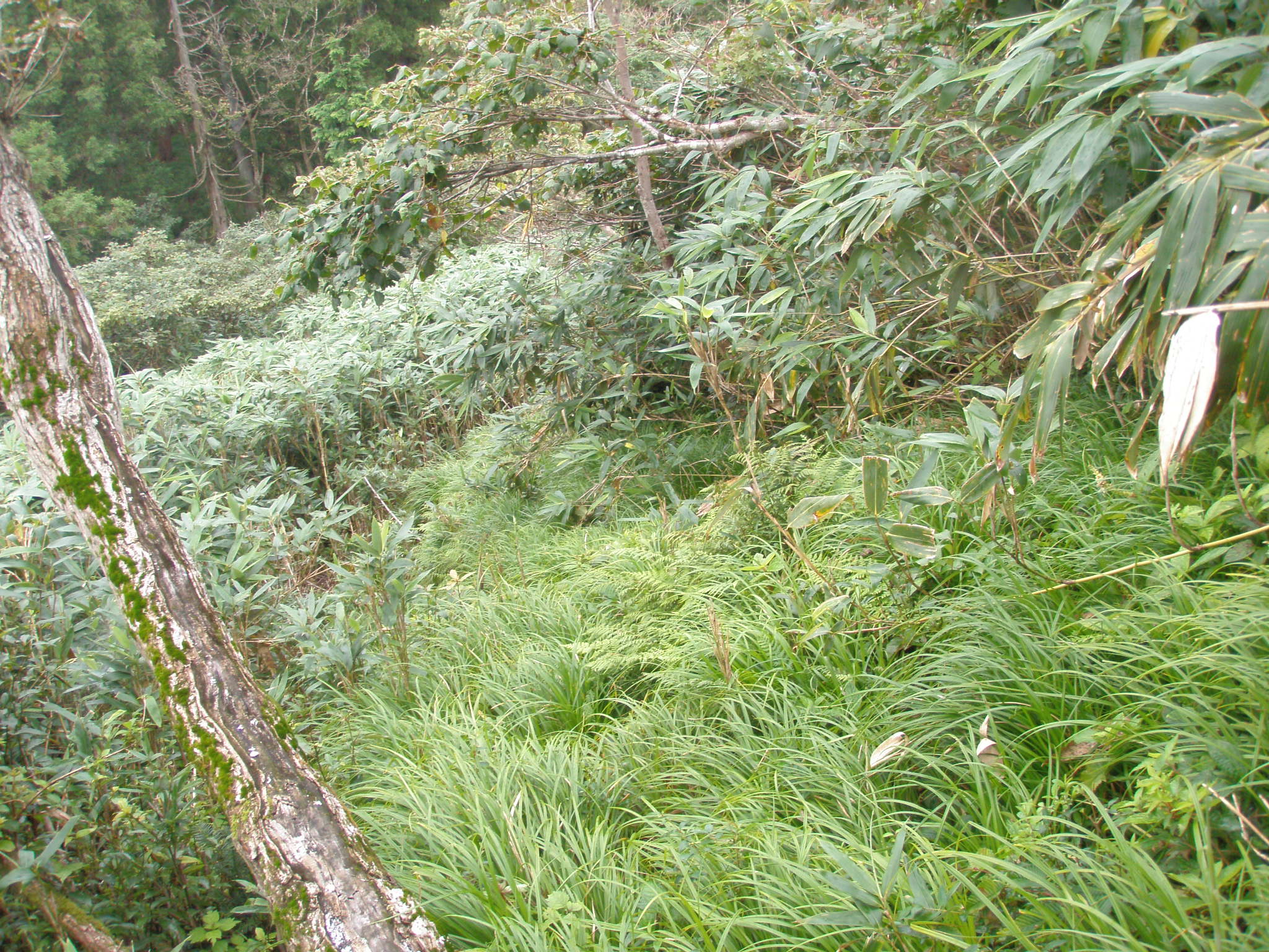 縦走路に入って直ぐに登山道は無くなり、薄い踏み跡です。