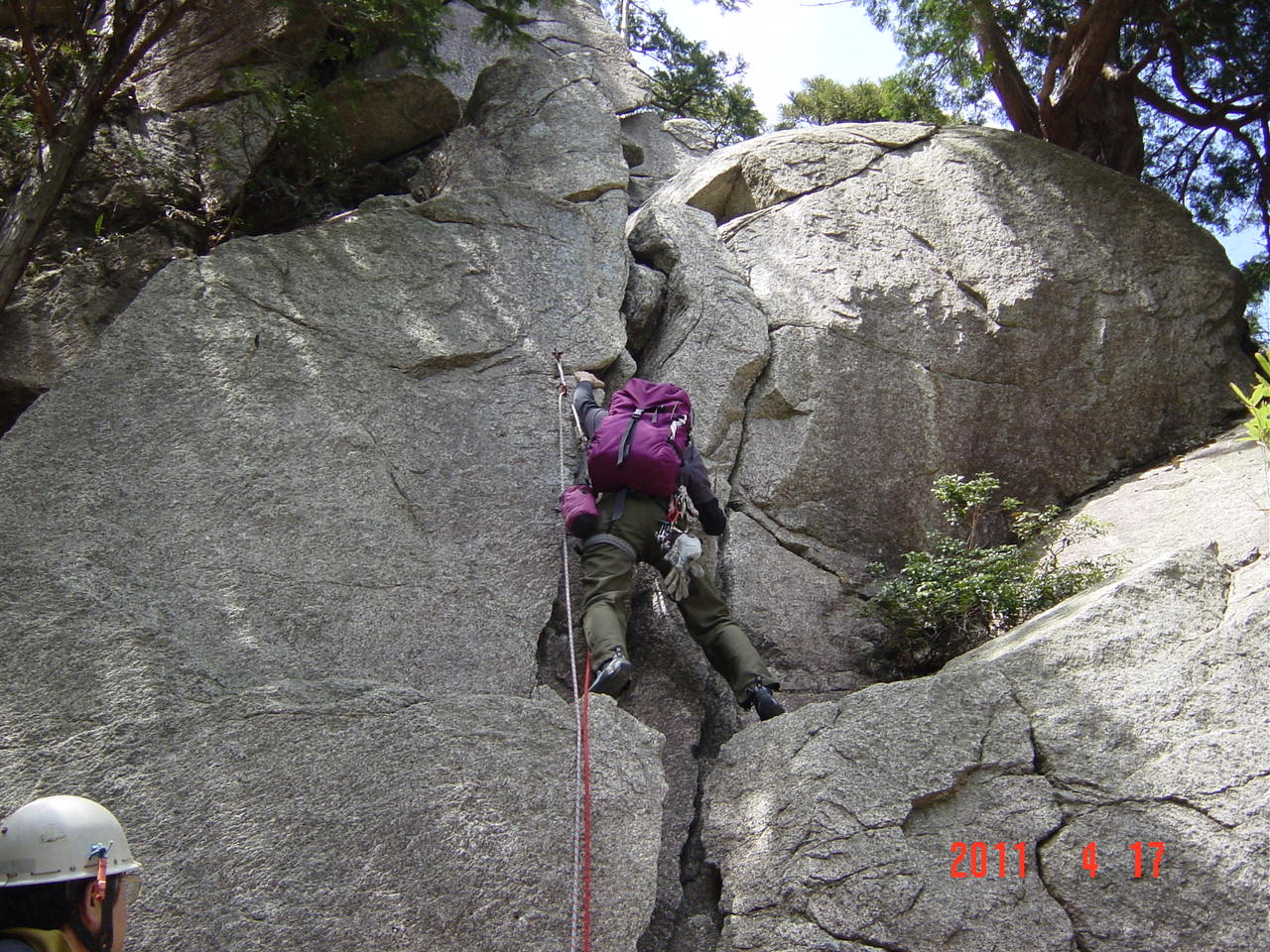 K合さんは現役時代の「こわいさん」のイメージが先行していて、われわれ現役会員はすこし緊張気味。しかし丸くなられたのか、叱られることも檄を飛ばされることもなく、穏やかに登りました。登りはさすがです。現役時代を髣髴とさせる登りでした。