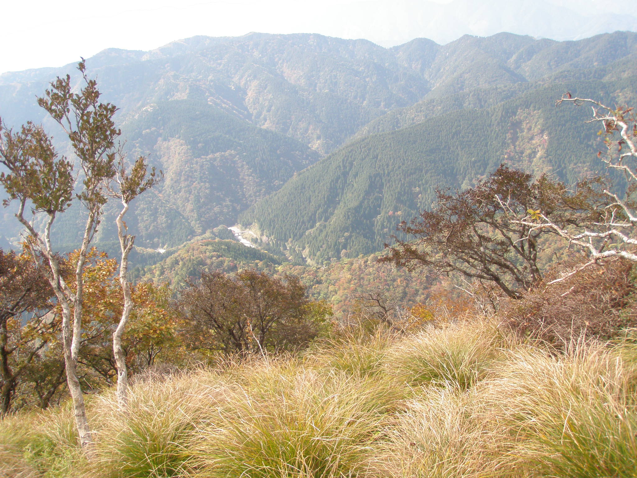 西のボタンブチからは御池林道の御池橋が見えます。以前は御池橋から登りましたが、最近は危険すぎて登れません。御池岳の急斜面は落石が頻発するのです。これは笹が無くなり、雨が降れば土が流され石がむきだしとなり、浮石だらけなのです。