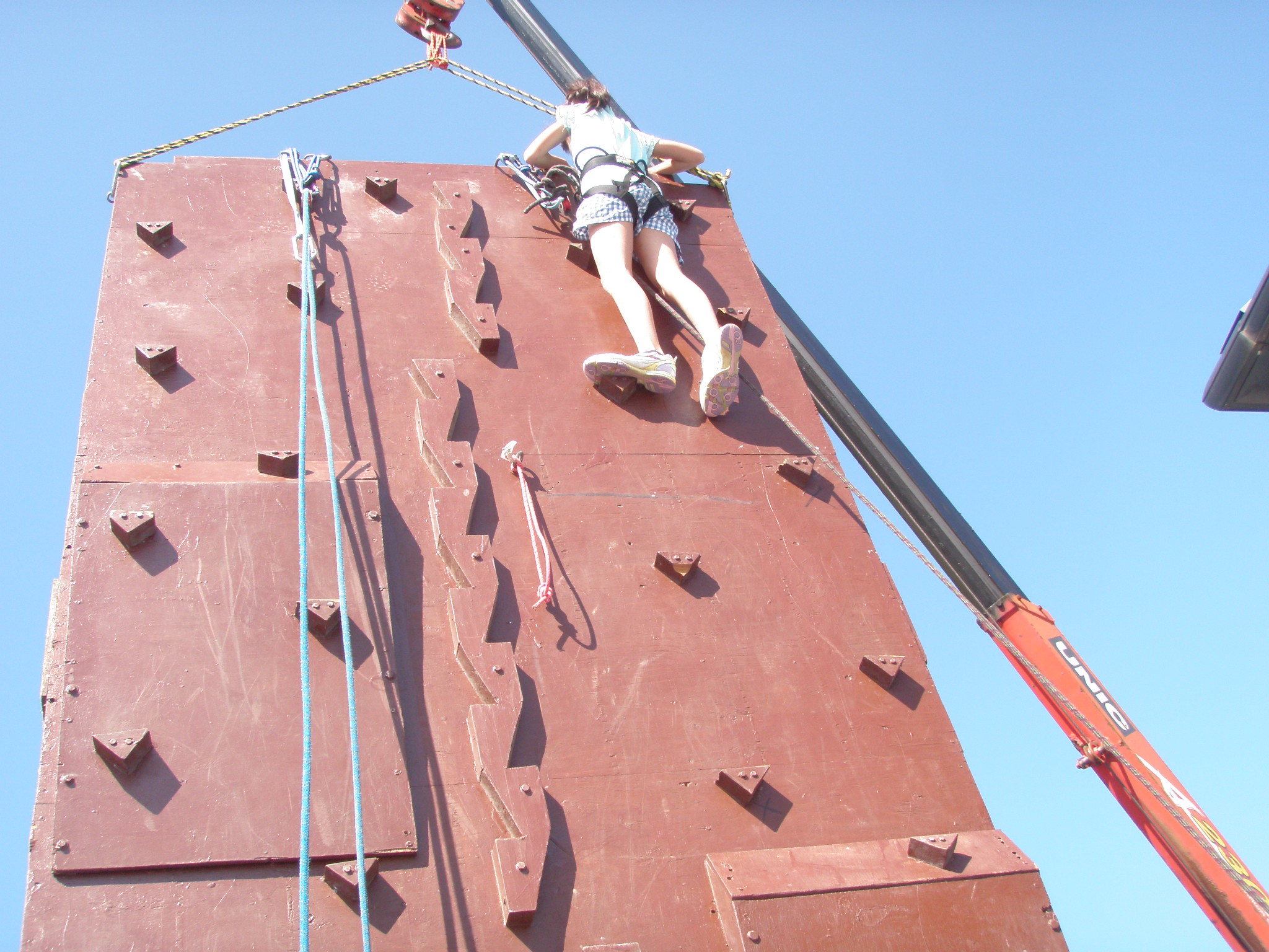 準備が出来ても、暫くは誰も来ません。毎年同じパターンですので、客引きに向かいます。一人を連れて来て、登らせていると、もう次が来ています。休む間もなく、登りに来られます。其れがひとたび途切れたら、暫く暇になります。そしてまた忙しくなります。そして午後からは、数人がはまり、ハーネスを外す事無く何回も登ります。其の内2ルートありますので、競争を始めます。それにしても最初は途中までしか登れ無かったのに、直ぐに要領が判り、楽しんで登っています。定時となり、今年も事故無く無事終了しました。