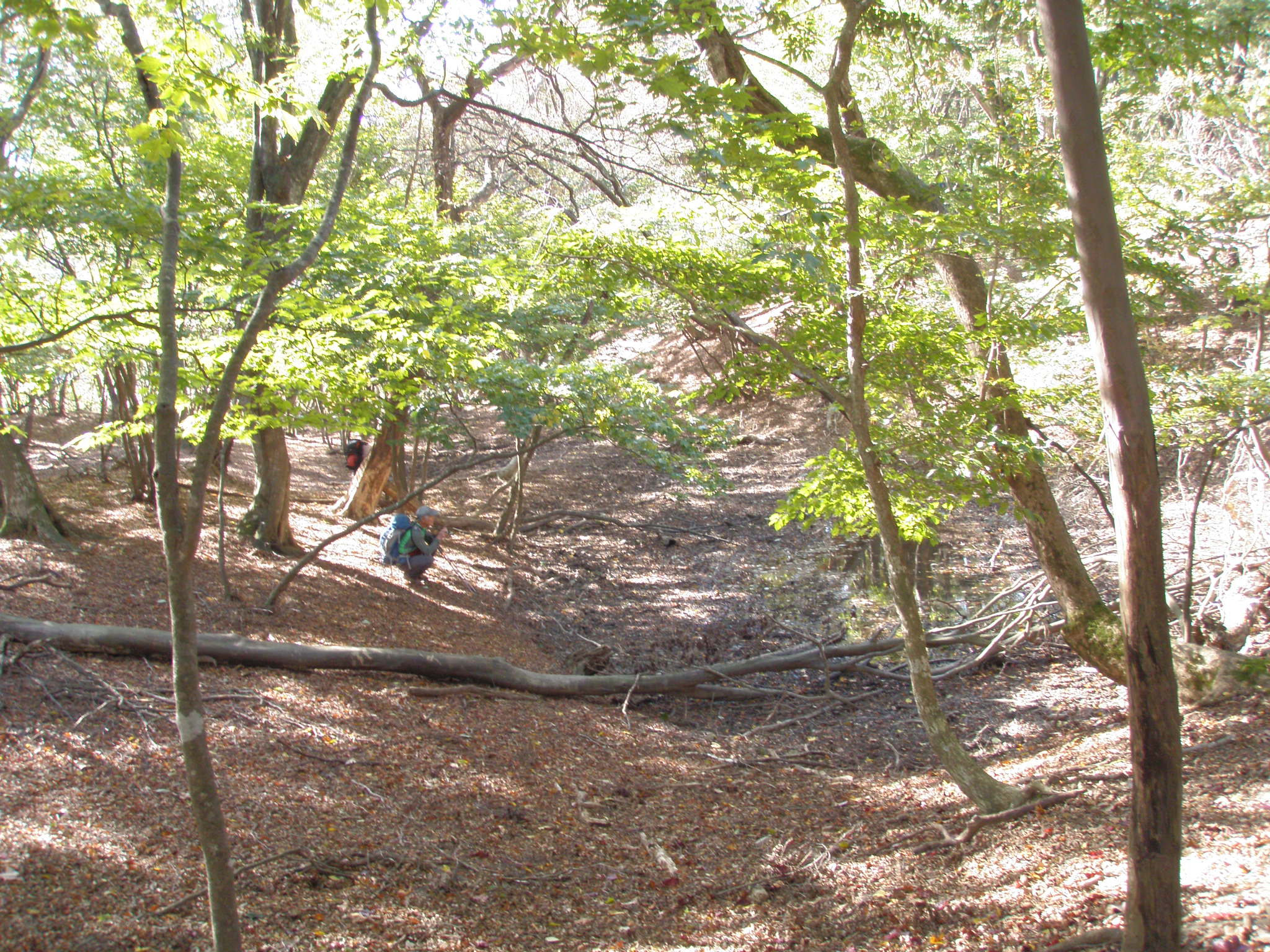 此方は今日のルートの地図がプリントできませんでしたので、尾根道に蛍光ペンを入れていましたので、もし前に追いつくのが遅かったら、トラバース道に入らないで、尾根道を進み、一人だけはぐれる事に成ったかも。何しろルートを知りませんので、尾根を進み何処かで出会うだろうと思い進みます。過去にも何度かはぐれた事が有りますが、ルート上に通過時間と名前などを書いたメモ等有効かな。もっとも携帯が通じれば問題有りませんが。ダイラは平坦な所で獣の楽園です。