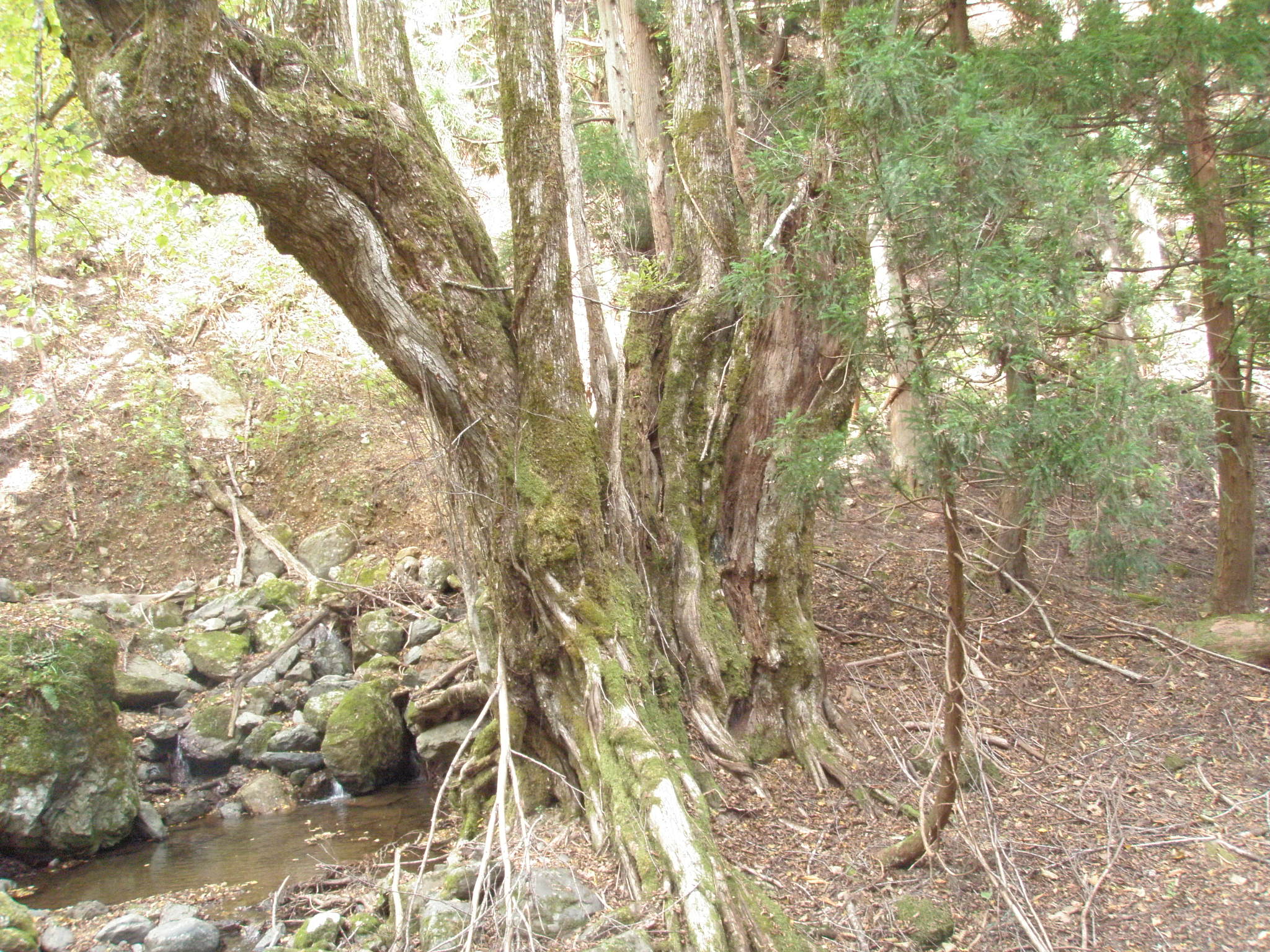 最初は右岸から小谷に降りた所で、登山道を見失いメンバーに確認して土手を登ると提案され、直ぐに崖となり行きずまりました。谷を降りるも、トラバースするも危険を感じ、此方一人で、道を探しに判る所まで戻りました。次は左岸の杉林を歩いて居たら、メンバーから右岸にテープが有ると指摘され、戻りました。最後は林道の手前で、草で判らなくなり道が違うと判断して右岸から左岸に移りましたが、林道に出たら高島トレイルの道は右岸でした。3回も判断が間違いました。それでも直ぐに判り適正に処理できました。しかし予定では2時間の所が2時間40掛かってしまいました。