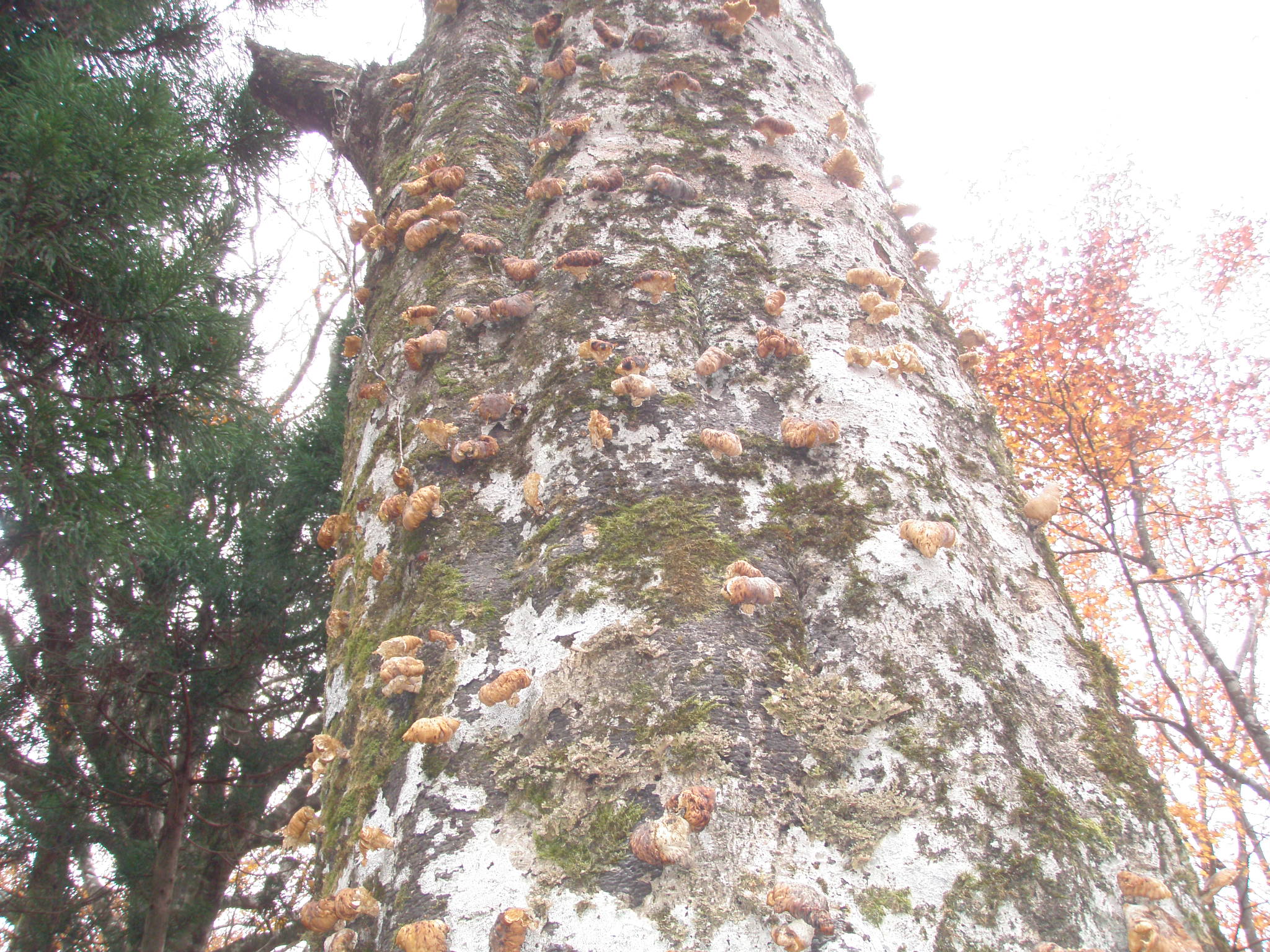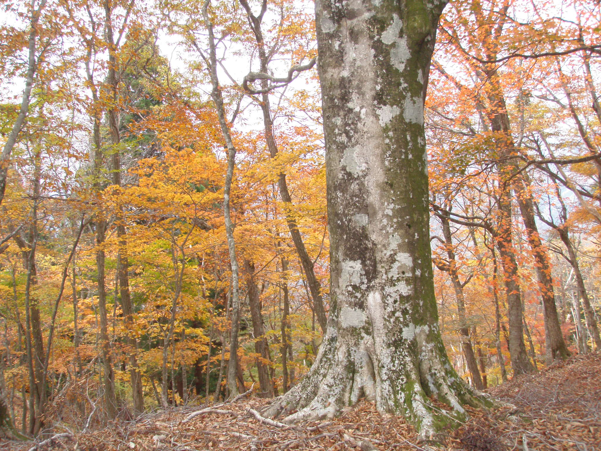 これは京都府最大のブナの木です。昨年はこの辺りは沢山キノコが付いた木が有ったのですが。今日は県境ピークに有っただけです。