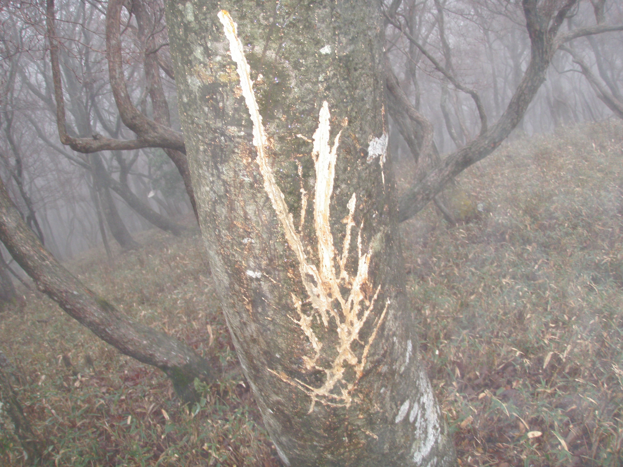 尾根に出たら真新しい熊のものと思われる爪痕が有りました。