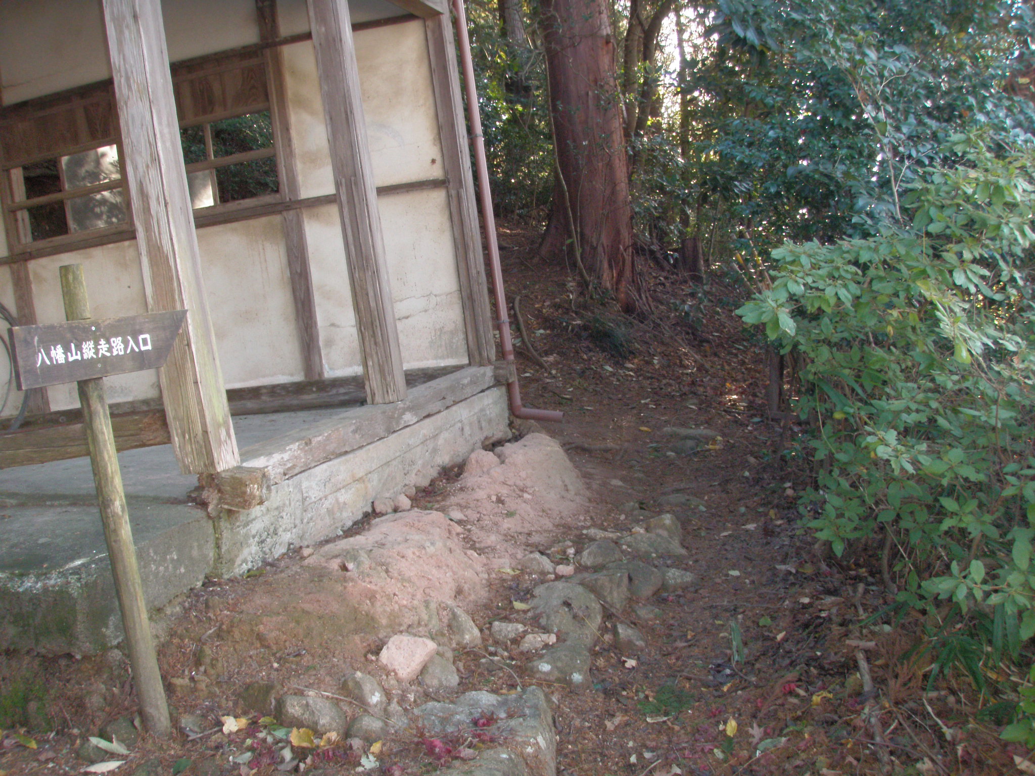 鞍部からは八幡山へのルートを離れ下界に降ります。