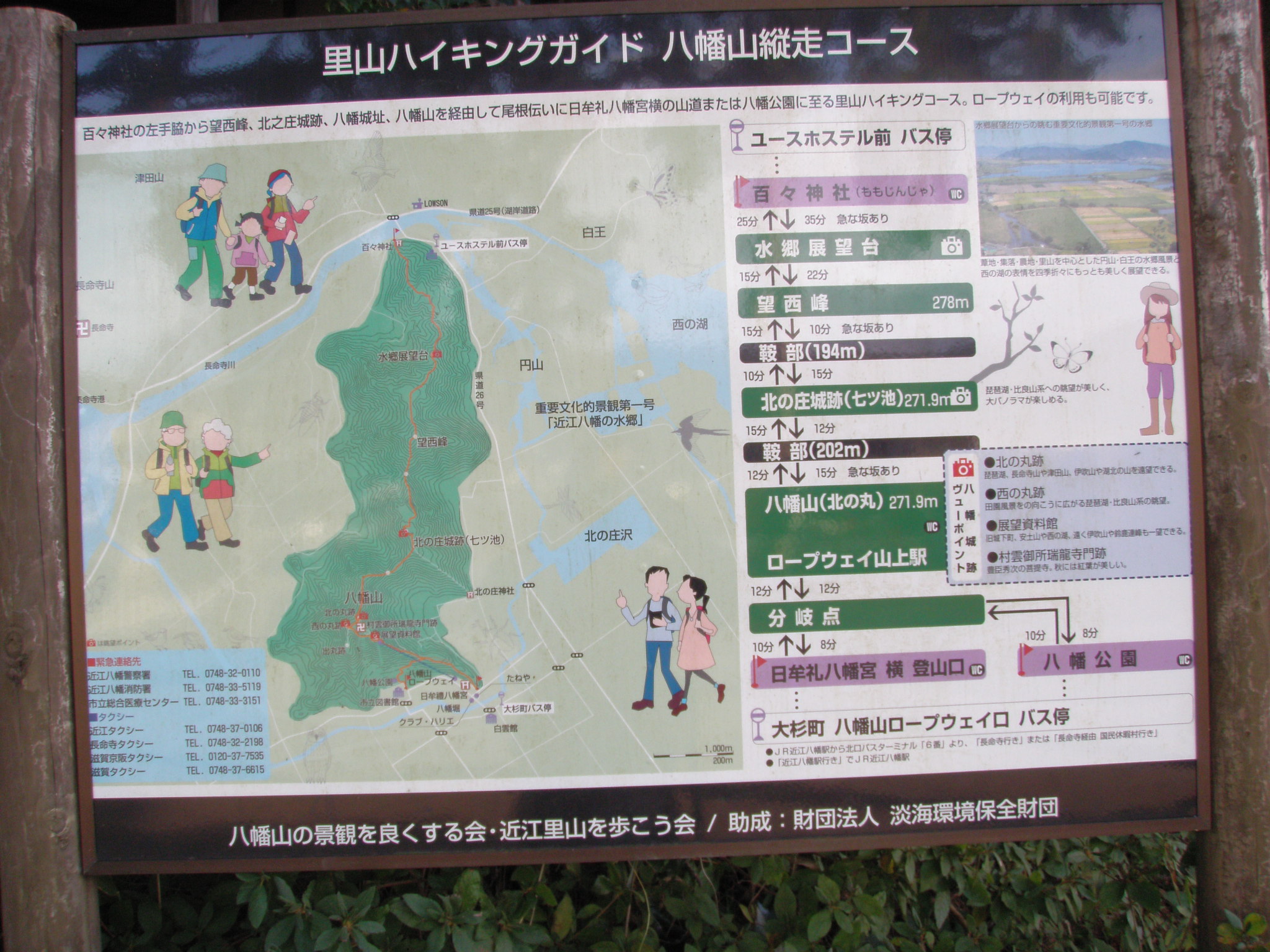 時間 百々神社8:56~9:27水郷展望台~10:00望西峰~10:11鞍部~10:26記念病院~10:55八幡公園からの登山道合流~11:15図書館~11:24八幡山南西尾根登山口~12:11八幡山(昼食)13:00~13:31P254~14:01鞍部~14:18望西峰~14:33水郷展望台~15:08百々神社