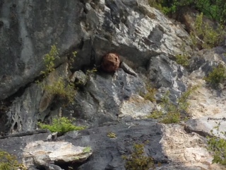 今日はなんかスズメバチ多いなと思ったらマシラ上部に大きな巣があった。