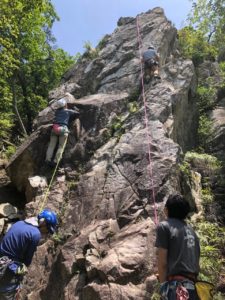M戸CLからクライミングの計画を依頼されグレードの幅が広い(5.4~5.11C)TR(トップロープ)が張りやすいなどで北小松の岩場(非公開の岩場)に行ってきました。まずキャッスルウォールで各自リード・TRで登ったあとバードロックに移動。ここは琵琶湖が一望出来とても見晴らしのいい場所です。今回久しぶりに会のメンバーとクライミングに行ったのですが、みなさん熱量がとても高く岩登りを楽しんでいたのが印象的でした。最近はジムばかりでしたが外岩の楽しさを再認識できた1日でした。