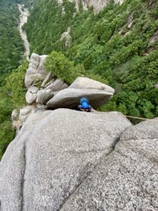 2ルートを登攀中のY田