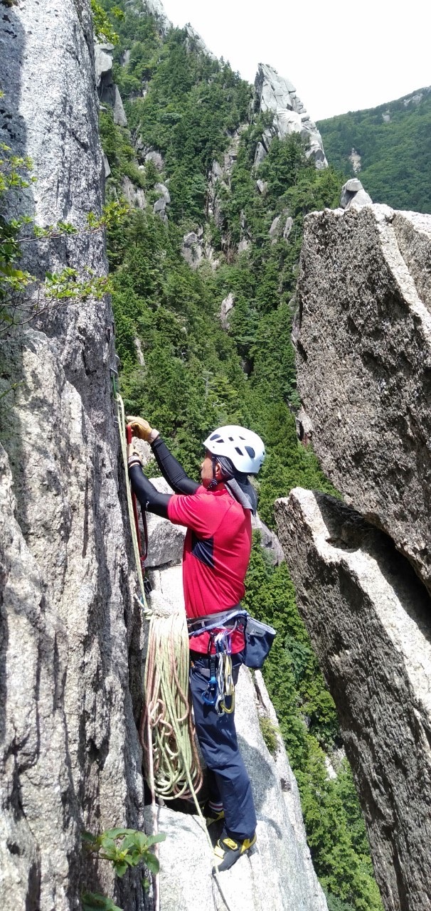 2ルートを登攀中のM戸