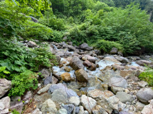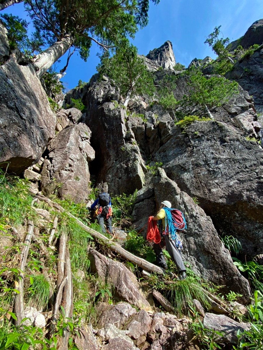 事前に地震の影響があるかもとクライマー仲間達から聞いていたが錫杖沢の渡渉は問題なく取り付きへ進めた。K合会長とO野はルート経験者だが、ルートやグレードが変わるような大きな落石や崩落は無いようだった。