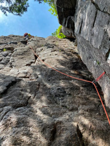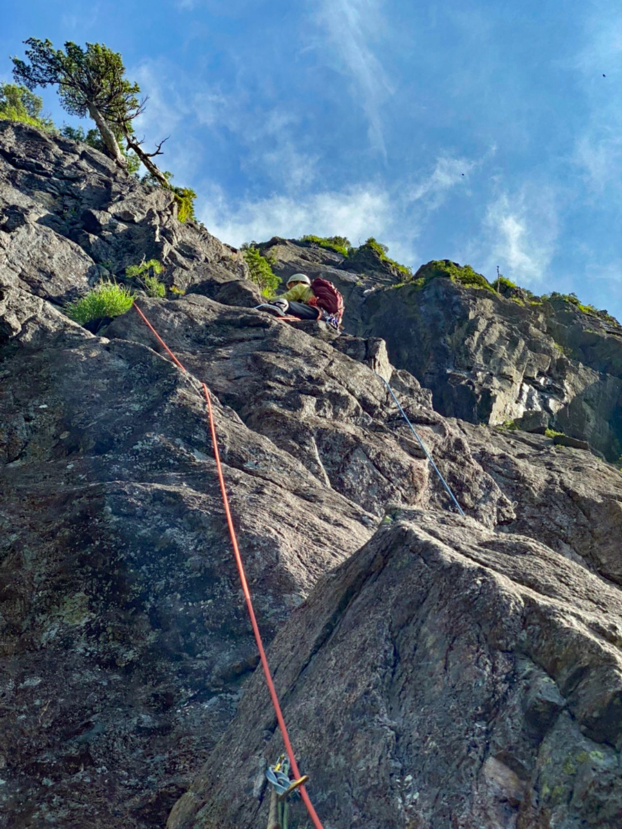7Pのフェースからの終了点 のH藤、登攀中のO野