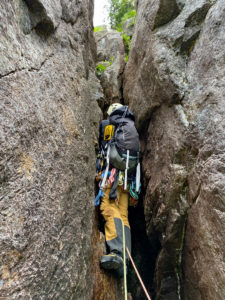7Pの大ピナクル、大チムニーを登攀中のM戸