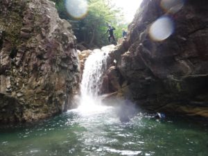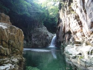 6:00 永源寺支所駐車場集合 → 6: 30 ツメカリ谷駐車場着 → 6:45 入渓 → 10:00 天狗滝 → 11:00 折り返しポイント → 11:00~11:30 昼食 →14:40 ツメカリ谷駐車場 ※帰路は往路と同ルートをキャニオニング