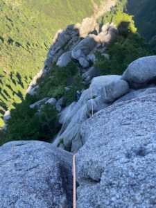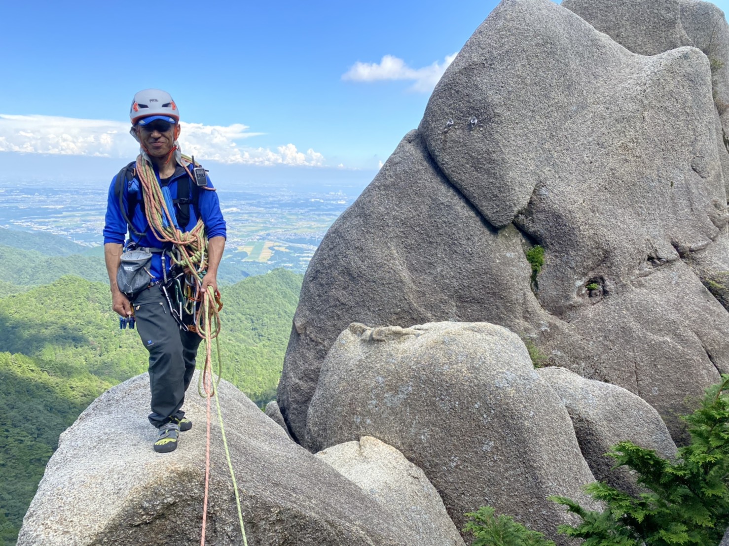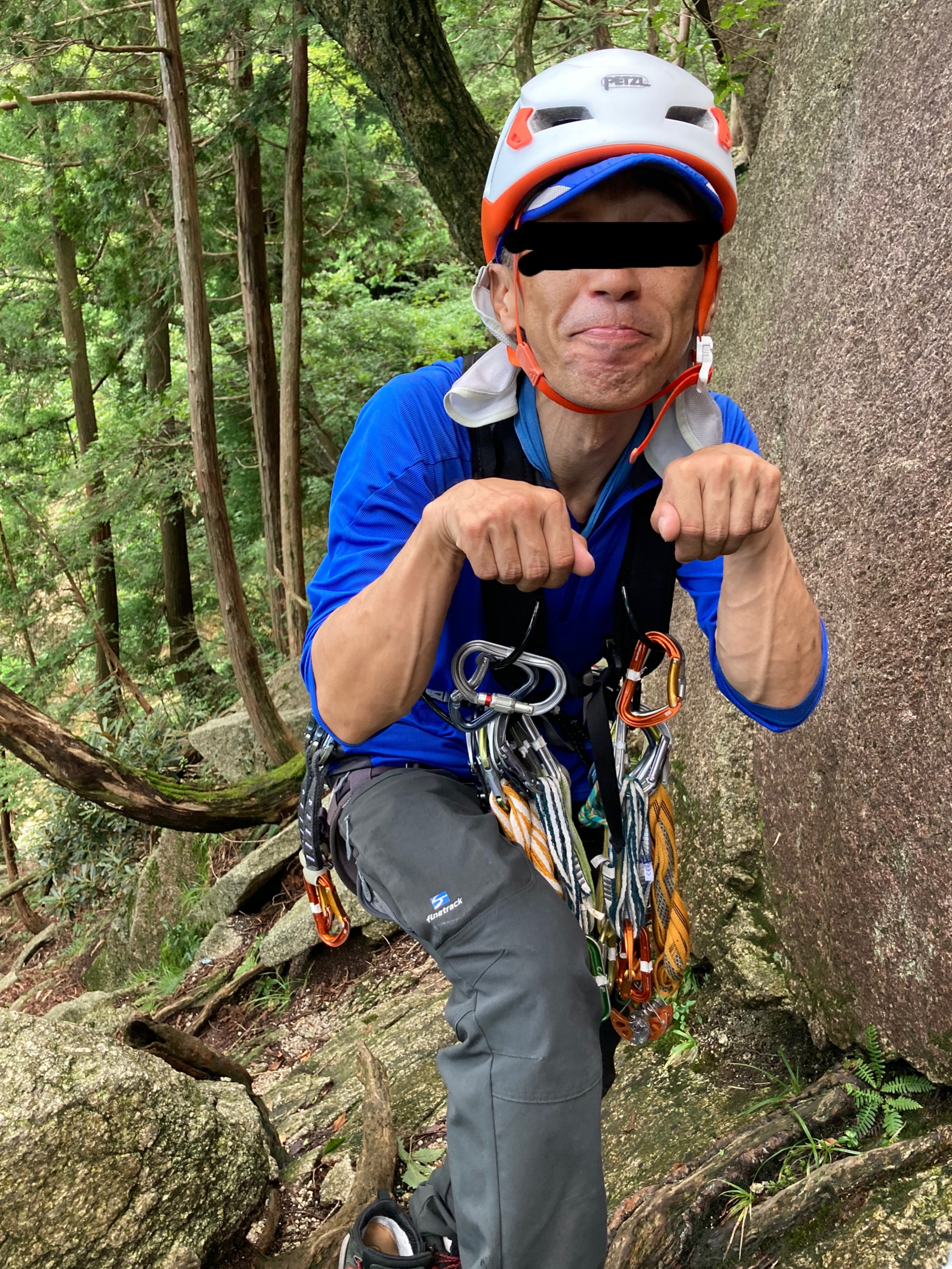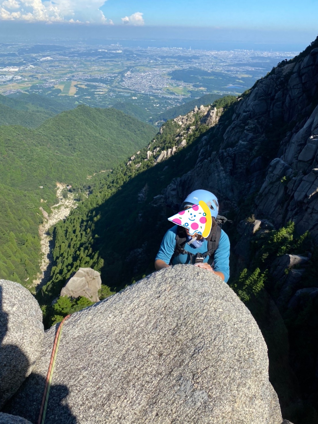 暑い中お疲れ様でした。前半は元気なくて心配しましたが途中からいつものWさんに戻ってクライミングを楽しめたようで良かったです。今後は一壁を4本程登ってWさんリードで何本か登り、前尾根もリードで登れるピッチを少しずつ増やせれば良いですね。(M戸 追記)