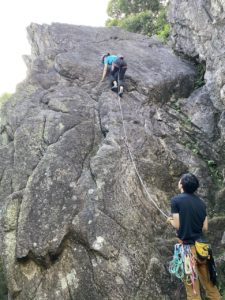 バフフェイス【5.10a】を登っているM戸。