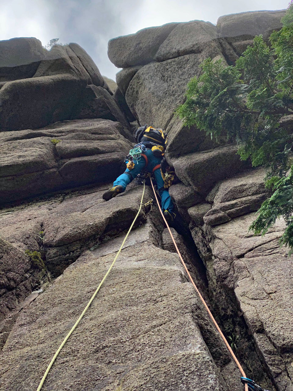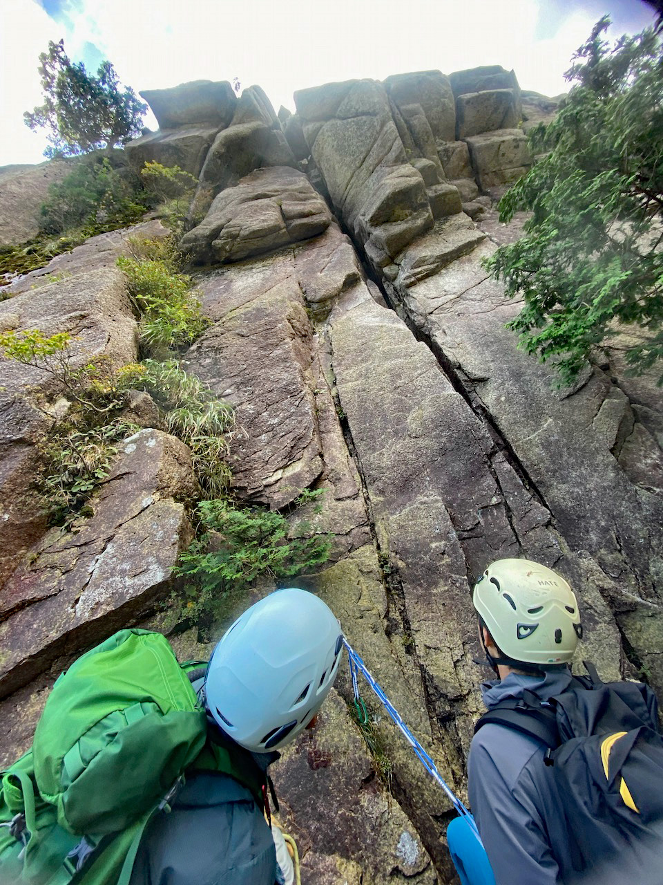 そこから少し下りてP3取り付き。リードH藤CLで同じくセカンドはM戸でビレイはT井でスタート。クラックを楽しみながら1P目を越えると直ぐに2ピッチ目の懸垂ポイント。ここもピッチを切らずに懸垂ポイントへ行った方が良さそう。