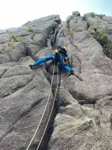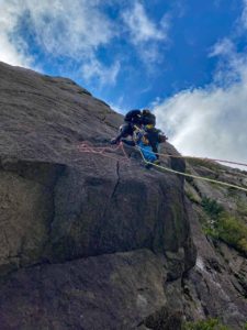 P4は、リードH藤CL でセカンドはM戸、ビレイはT井でスタート。クラック・チムニーの中に入り込み過ぎると苦しい。P4・2P目はM戸がリードでさせてもらった。簡単な所で距離短く直ぐに終わったがリードできて良かった。P4は今回2Pに切ったが距離的に1Pで十分だと思う。