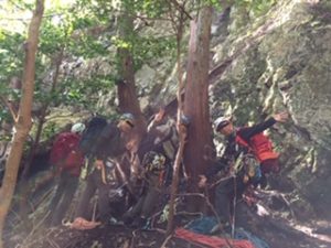 3ピッチ目を登り切ったところで、丁度いい樹を発見。